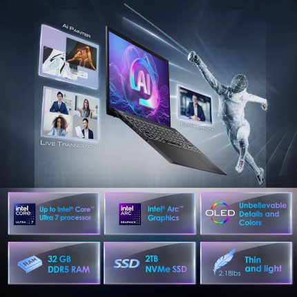 Key Features AI-Accelerated Performance: Powered by the Intel Core Ultra 7-258V processor, enabling AI-driven productivity assistants, text and image creation,