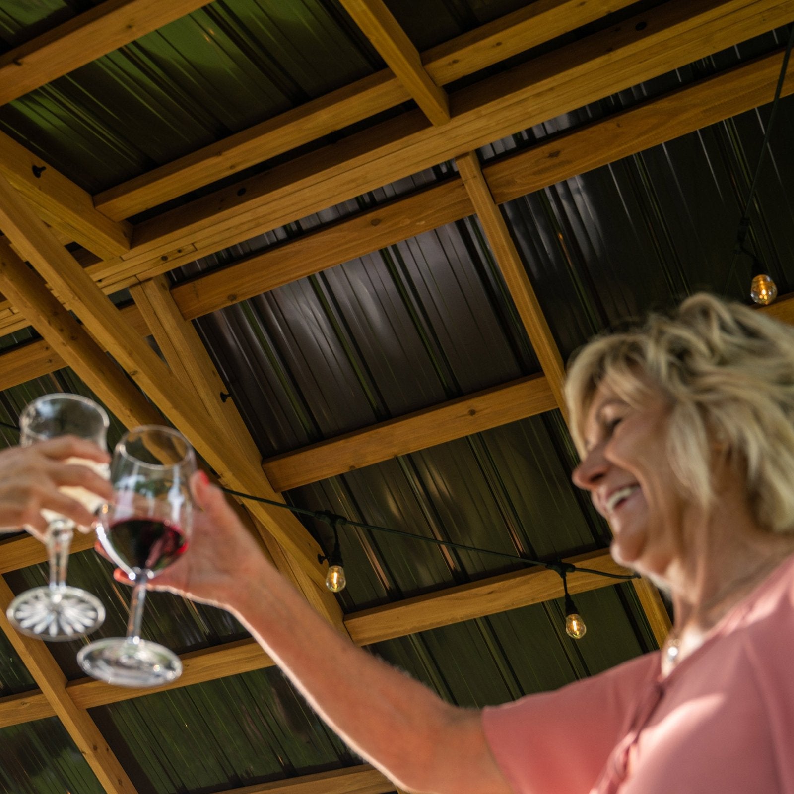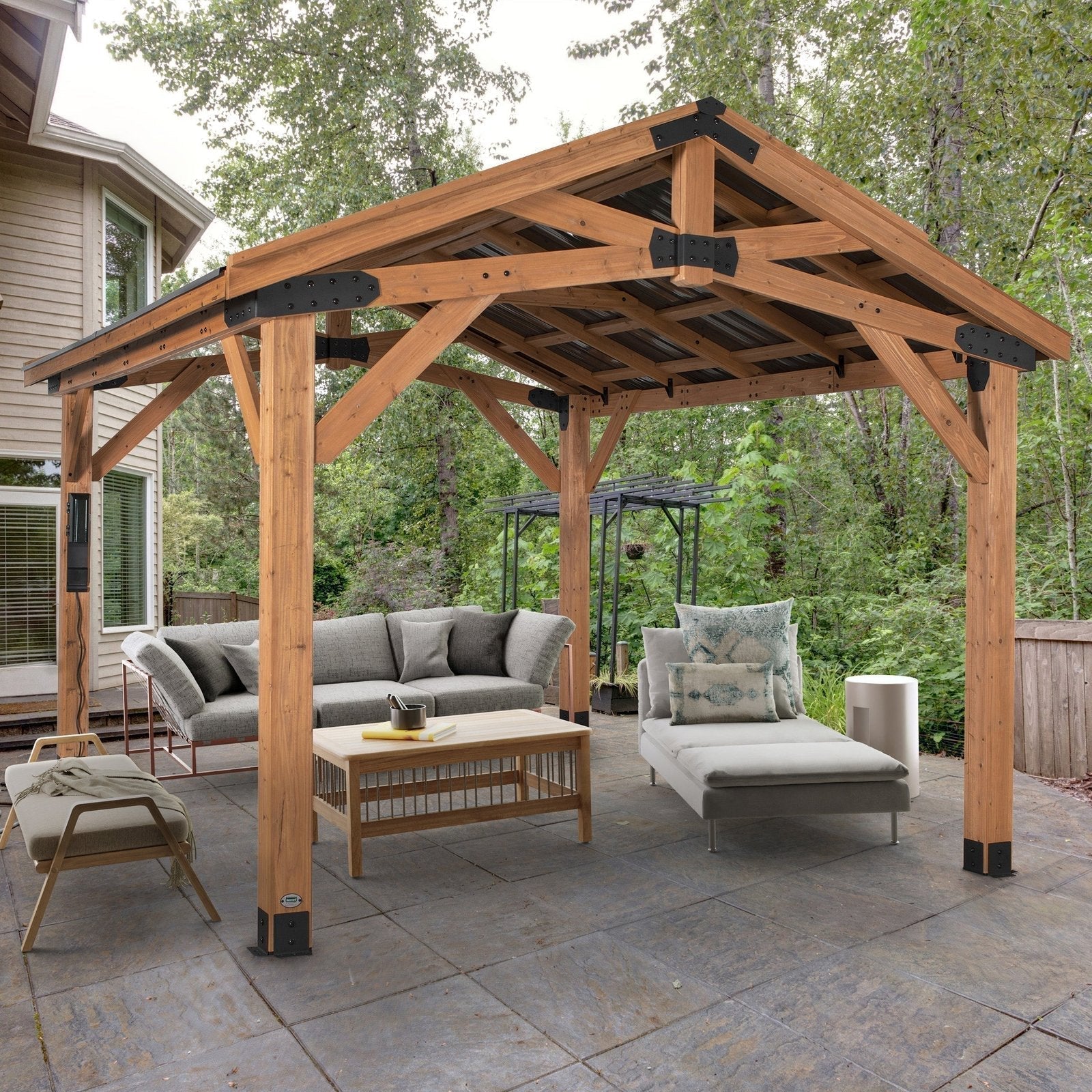 A sturdy cedar frame and strong steel roof provide long-lasting durability and the timeless design will enhance the value and aesthetics of your space.