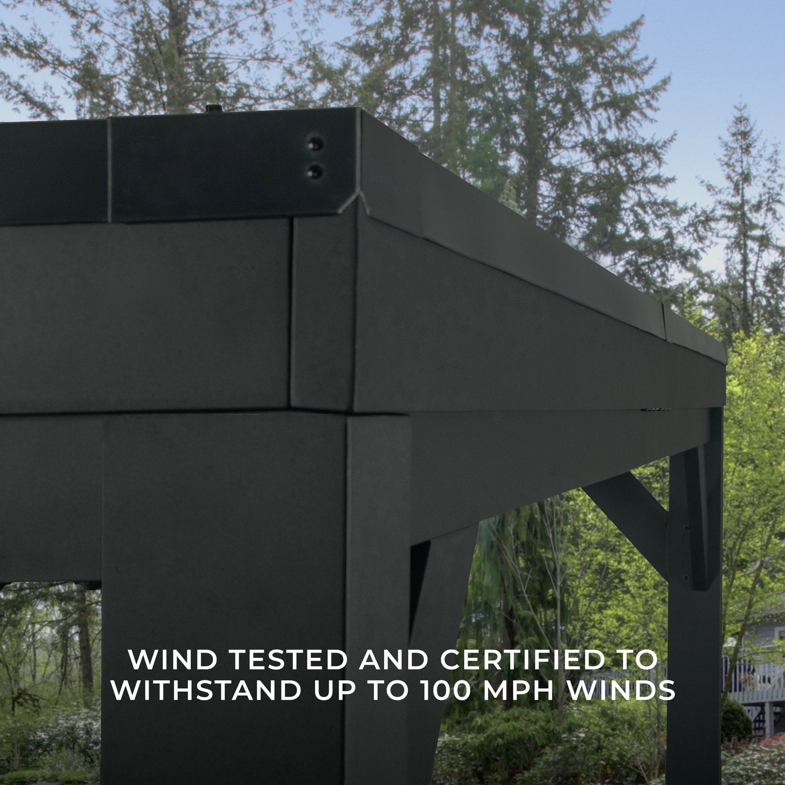 Stand out in a big way with our 20×9.5 Stonebridge Gazebo. This maintenance free modern metal gazebo stands up to anything. The Stonebridge Gazebo features a matte black finish and sloped roof, providing plenty of space for multiple uses.