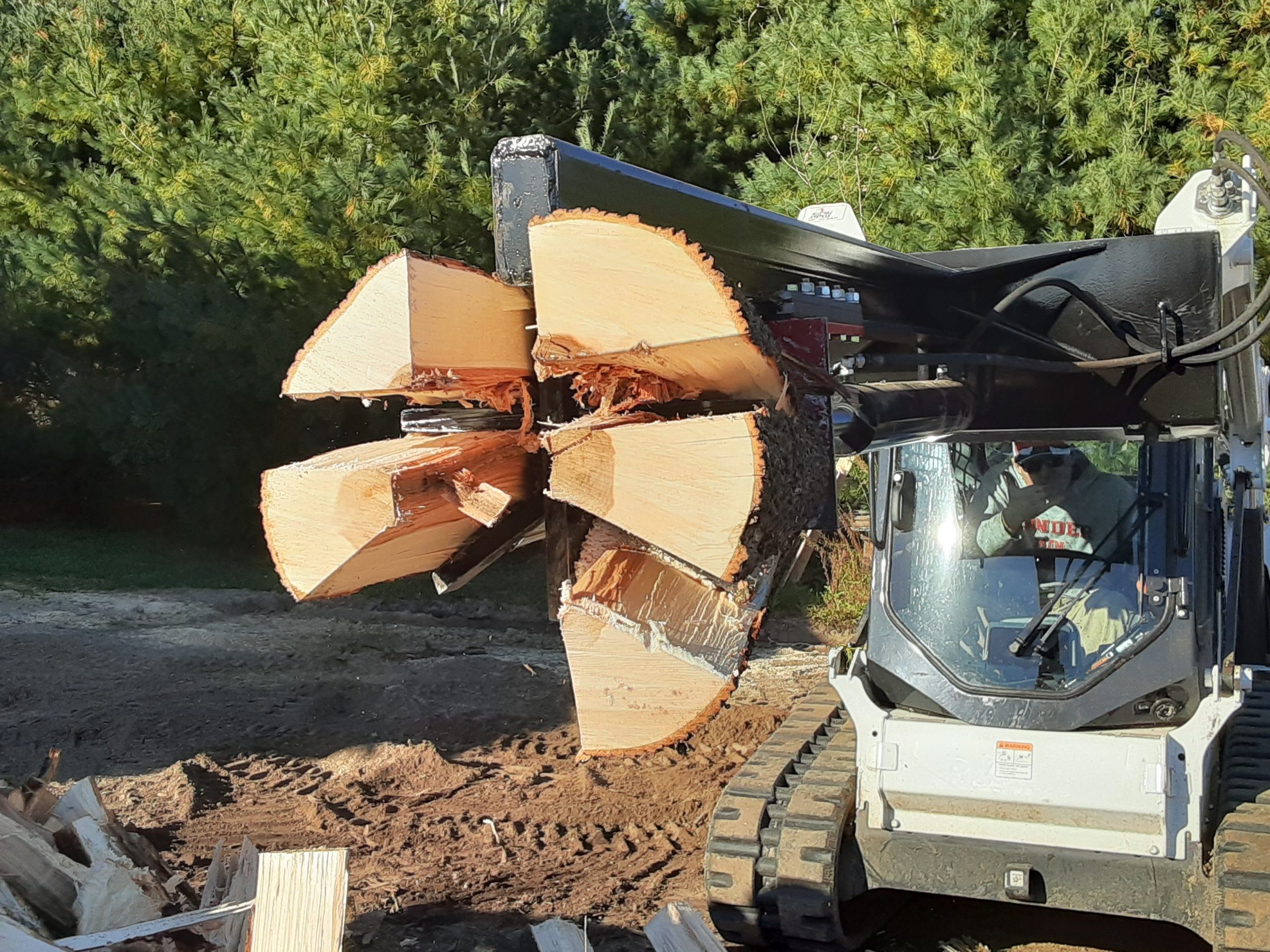 Our Upside down mounted RAM-6Way 30 ton skid loader log splitter is great for splitting the extra large logs that you don’t want to even think about lifting. The 30 tons of ram force and the sturdy tubular design beam allows you to pick these large logs off the ground and split them without ever leaving your cab.  The 6 way wedge is made from 4140 hardened steel and will dramatically reduce your splitting time!