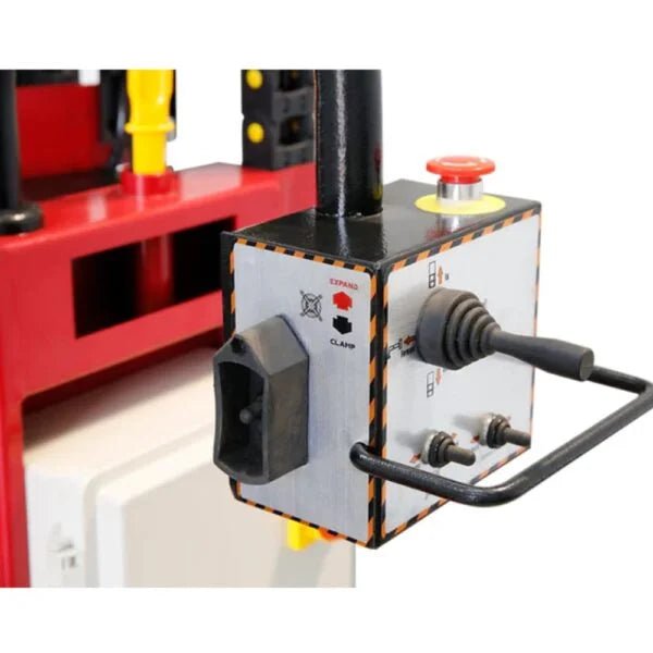 Unique clamps with jaw protectors are designed to fit aluminum wheels without causing damage, ensuring the safety of valuable rims. Hand and foot operations are intuitive and safe, while the joystick-controlled machine offers enhanced convenience and control.