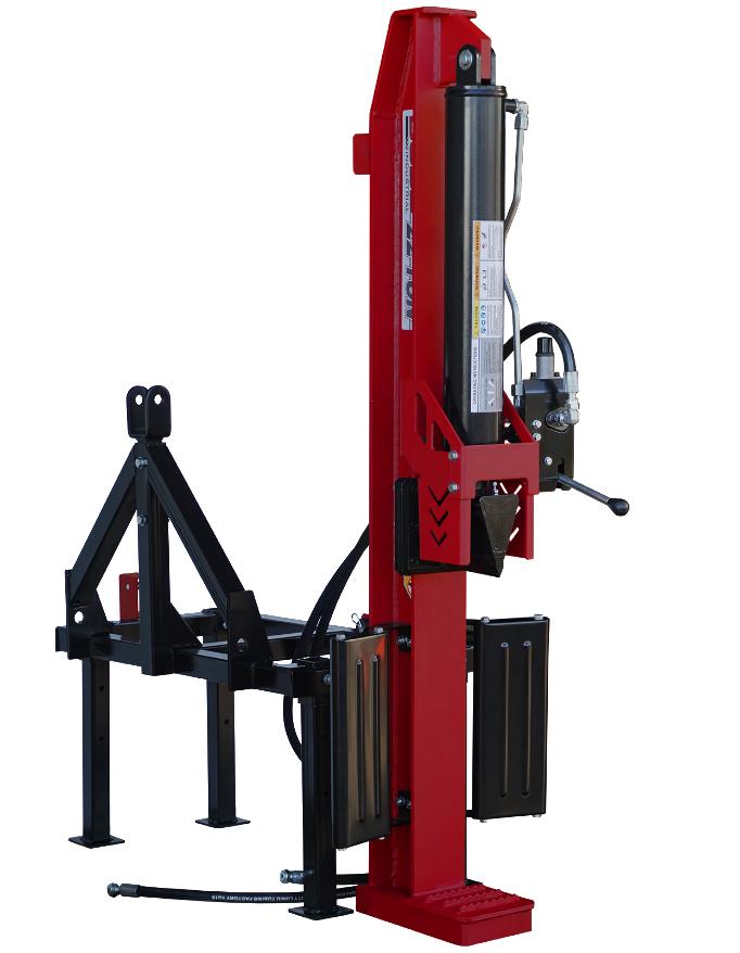 This 3 point wood splitter is fully adjustable for any category 1 or category 2, 3-point hitch size. Working height is from waist level and can be lowered to a near ground position, or as low as your 3-point arms can go allowing you to set it at a working height that’s comfortable for you. You can also run in the vertical position for those heavier logs. No need to lift them onto the tray!