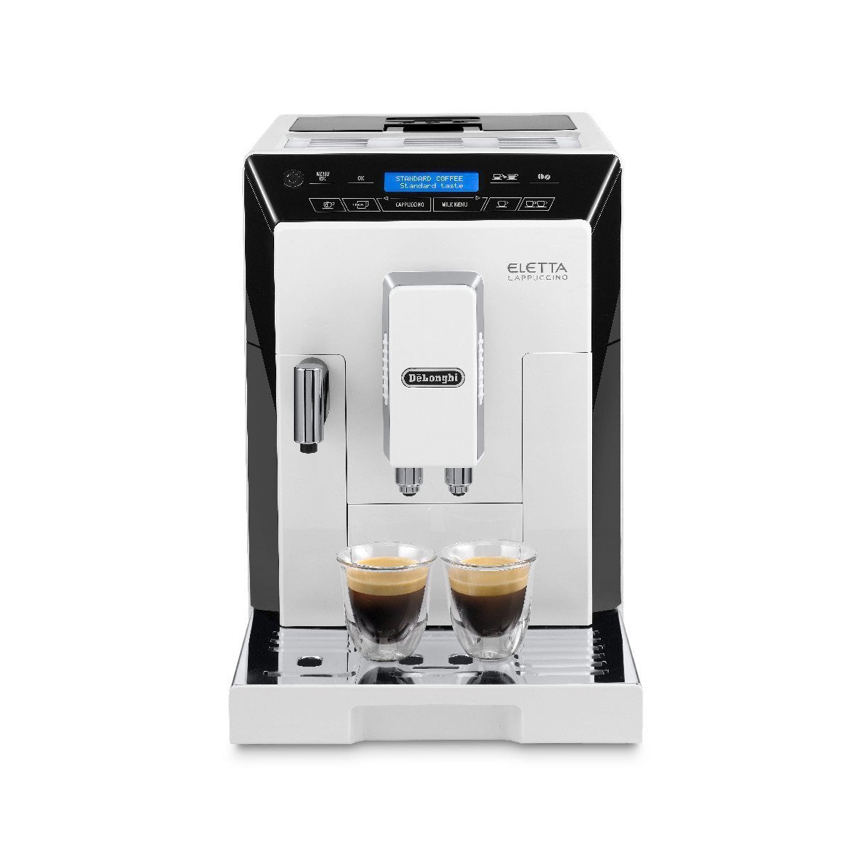 The DeLonghi ECAM44660W White Eleltta Superautomatic Coffee and Espresso machine brings a variety of barista quality drinks at the touch of a button. The Eletta’s outstanding convenience makes morning and nighttime drinks a pleasure, especially for those who prefer both convenience and quality.