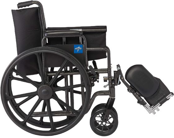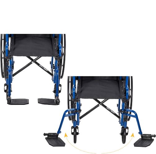 Flipback Armrests and Swing Away Footrests: This lightweight wheelchair has removable swing-away footrests and padded “desk”-style armrests that make it simpler to sit at a desk or table and flip back for transfers.