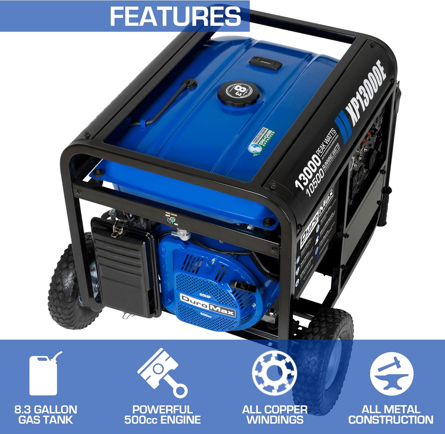DuroMax XP13000EH 13,000-Watt Dual Fuel Portable Generator - Gas & Propane, Electric Start
