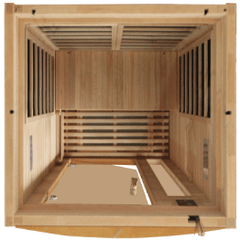 Dynamic Barcelona 1-2-person Low EMF (Under 8MG) FAR Infrared Sauna (Canadian Hemlock) SKU: DYN-6106-01 Dynamic Saunas are constructed of environmentally-friendly Canadian Hemlock wood planks. Our saunas feature energy efficient Low EMF FAR infrared heating panels that help relax and rejuvenate the body. Dynamic Saunas can be installed on carpet or any indoor location including basements, master bath, walk in closet or can also be added it to a fitness room. Low EMF – (EMF between 6-10MG – 6 to 8 inches from the heating panels) Features: This item will be delivered curbside only on a pallet by a freight carrier. Full 1 person capacity 6 Dynamic Low EMF (EMF between 6-10MG – 6 to 8 inches from the heating panels) FAR Infrared Carbon heating panels 2 on the rear wall 1 on each side wall 1 under the bench and 1 on the floor board Natural Reforested Canadian Hemlock wood construction Clear Tempered glass door and with side windows Interior Chromotherapy Color Lighting System Lighting System Interior / Exterior LED control panels Bluetooth and MP3 auxiliary connection with built in speakers 118F-132F is the deal temperature range, sauna can heat up to 140F Electrical service: 120 V/15 AMP Non GFCI plug & play (Recommend Dedicated Outlet) Indoor Use Only. Sauna weight: 285 lbs.Dynamic Barcelona 1-2-person Low EMF (Under 8MG) FAR Infrared Sauna (Canadian Hemlock)SKU: DYN-6106-01Dynamic Saunas are constructed of environmentally-friendly Canadian Hemlock wood planks. Our saunas feature energy efficient Low EMF FAR infrared heating panels that help relax and rejuvenate the body. Dynamic Saunas can be installed on carpet or any indoor location including basements, master bath, walk in closet or can also be added it to a fitness room.Low EMF – (EMF between 6-10MG – 6 to 8 inches from the heating panels)Features:This item will be delivered curbside only on a pallet by a freight carrier.Full 1 person capacity6 Dynamic Low EMF (EMF between 6-10MG – 6 to 8 inches from the heating panels) FAR Infrared Carbon heating panels 2 on the rear wall 1 on each side wall 1 under the bench and 1 on the floor boardNatural Reforested Canadian Hemlock wood constructionClear Tempered glass door and with side windowsInterior Chromotherapy Color Lighting SystemLighting SystemInterior / Exterior LED control panelsBluetooth and MP3 auxiliary connection with built in speakers118F-132F is the deal temperature range, sauna can heat up to 140FElectrical service: 120 V/15 AMP Non GFCI plug & play (Recommend Dedicated Outlet)Indoor Use Only.Sauna weight: 285 lbs.Dynamic Barcelona 1-2-person Low EMF (Under 8MG) FAR Infrared Sauna (Canadian Hemlock)SKU: DYN-6106-01Dynamic Saunas are constructed of environmentally-friendly Canadian Hemlock wood planks.
