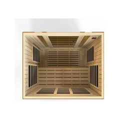 Dynamic Low EMF Far Infrared Sauna, Bellagio Edition SKU: DYN-6306-01 Dynamic Canadian Hemlock Saunas bring healthy living and longevity to the privacy of your home cost effectively. Modern technology and energy efficiency in FAR infrared carbon heating panels allow beneficial penetrating FAR infrared waves to remove body toxins, increase blood circulation, ease pain from sore muscles or aching joints, burn calories and improve skin tone among other benefits. Dynamic Low EMF FAR Infrared Saunas are constructed with the environment in mind which accounts for our efforts in using Reforested Canadian Hemlock wood. Our sauna walls are double paneled constructed with the thickest interior and exterior wood planks compared to others in the same industry. This all translates to a quality sauna that retains heat more efficiently, heats up faster and wastes less energy. Our Low EMF FAR infrared Carbon Energy Efficient heating panels are 30% larger than saunas heated by ceramic tubes and penetrate skin 40% more to maximize therapeutic benefits. Unlike ceramic heaters, you will never have to replace our Carbon Energy Efficient heating panels. Dynamic Saunas Carbon Energy Efficient panels also heat up 30% faster than saunas equipped with ceramic panels and 100% faster than rock and water steam saunas. Dynamic Saunas 3-person sauna is designed for ease of use and is an outstanding value. Enjoy the convenience of operating a Dynamic Sauna with our dual (interior and exterior) soft touch control panel and LED display featuring sauna temperature and time functions. Every Dynamic Sauna is equipped with a reduced wattage floor and lower bench heater to allow the same benefits and treatment to your legs and feet without the burning sensation of other sauna manufactures. Enjoy your sauna session with your favorite music through the sauna’s built in MP3 auxiliary or Bluetooth connection with speakers. Dynamic Saunas enhances your sauna experience with Chromotherapy (color therapy) lighting system. The sauna plugs into a dedicated 20 amp 120 volt (Please consult with an electrician) and the sauna may be installed on carpet and at any indoor location including the basement, garage, master bath or walk in closet. Our sauna would be a beautiful and worthwhile addition to any fitness room. See and feel the difference today! Features: 9 Dynamic Low EMF FAR Infrared Carbon heating panels 3 on the rear wall 2 on each side wall 1 under the bench and 1 on the floor board Full 3 person capacity Natural Reforested Canadian Hemlock wood construction 6mm Interior and Exterior wood planks with a 1.13 inch inner frame Bronze Privacy Tempered glass door and with side windows Exterior Accent Lighting / Interior Chromotherapy Color Lighting System Interior & exterior LED control panel / Built in Bluetooth – MP3 auxiliary Connection and 2 speakers Electrical Service: Special Electical 110 V/20 AMP dedicated receptacle and breaker (Not 220/240 V) (Please consult a certified electrician.) Indoor Use Only Dimension: 75″ H X 63″ W X 41″ Sauna weight: 390 lbs.Dynamic Low EMF Far Infrared Sauna, Bellagio EditionSKU: DYN-6306-01Dynamic Canadian Hemlock Saunas bring healthy living and longevity to the privacy of your home cost effectively. Modern technology and energy efficiency in FAR infrared carbon heating panels allow beneficial penetrating FAR infrared waves to remove body toxins, increase blood circulation, ease pain from sore muscles or aching joints, burn calories and improve skin tone among other benefits.Dynamic Low EMF FAR Infrared Saunas are constructed with the environment in mind which accounts for our efforts in using Reforested Canadian Hemlock wood. Our sauna walls are double paneled constructed with the thickest interior and exterior wood planks compared to others in the same industry. This all translates to a quality sauna that retains heat more efficiently, heats up faster and wastes less energy.Our Low EMF FAR infrared Carbon Energy Efficient heating panels are 30% larger than saunas heated by ceramic tubes and penetrate skin 40% more to maximize therapeutic benefits. Unlike ceramic heaters, you will never have to replace our Carbon Energy Efficient heating panels. Dynamic Saunas Carbon Energy Efficient panels also heat up 30% faster than saunas equipped with ceramic panels and 100% faster than rock and water steam saunas.Dynamic Saunas 3-person sauna is designed for ease of use and is an outstanding value. Enjoy the convenience of operating a Dynamic Sauna with our dual (interior and exterior) soft touch control panel and LED display featuring sauna temperature and time functions. Every Dynamic Sauna is equipped with a reduced wattage floor and lower bench heater to allow the same benefits and treatment to your legs and feet without the burning sensation of other sauna manufactures. Enjoy your sauna session with your favorite music through the sauna’s built in MP3 auxiliary or Bluetooth connection with speakers.Dynamic Saunas enhances your sauna experience with Chromotherapy (color therapy) lighting system.The sauna plugs into a dedicated 20 amp 120 volt (Please consult with an electrician) and the sauna may be installed on carpet and at any indoor location including the basement, garage, master bath or walk in closet. Our sauna would be a beautiful and worthwhile addition to any fitness room. See and feel the difference today!Features:9 Dynamic Low EMF FAR Infrared Carbon heating panels 3 on the rear wall 2 on each side wall 1 under the bench and 1 on the floor boardFull 3 person capacityNatural Reforested Canadian Hemlock wood construction6mm Interior and Exterior wood planks with a 1.13 inch inner frameBronze Privacy Tempered glass door and with side windowsExterior Accent Lighting / Interior Chromotherapy Color Lighting SystemInterior & exterior LED control panel / Built in Bluetooth – MP3 auxiliary Connection and 2 speakersElectrical Service: Special Electical 110 V/20 AMP dedicated receptacle a