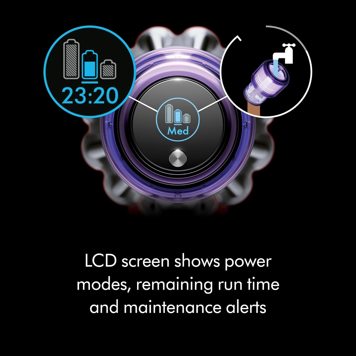 • Intelligent Cleaning – Auto mode adapts power based on floor type, while LCD screen displays power mode, maintenance alerts, and remaining runtime⁴.