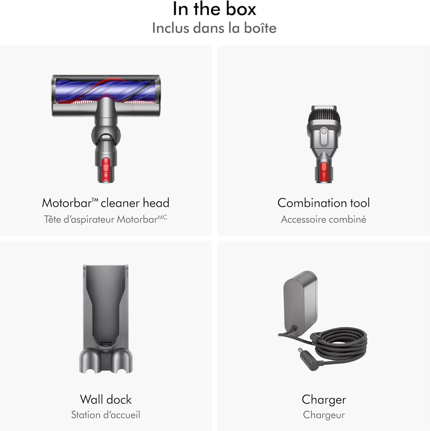 • Comes with 2 Dyson-engineered accessories to clean up high, down low, and everywhere in between.