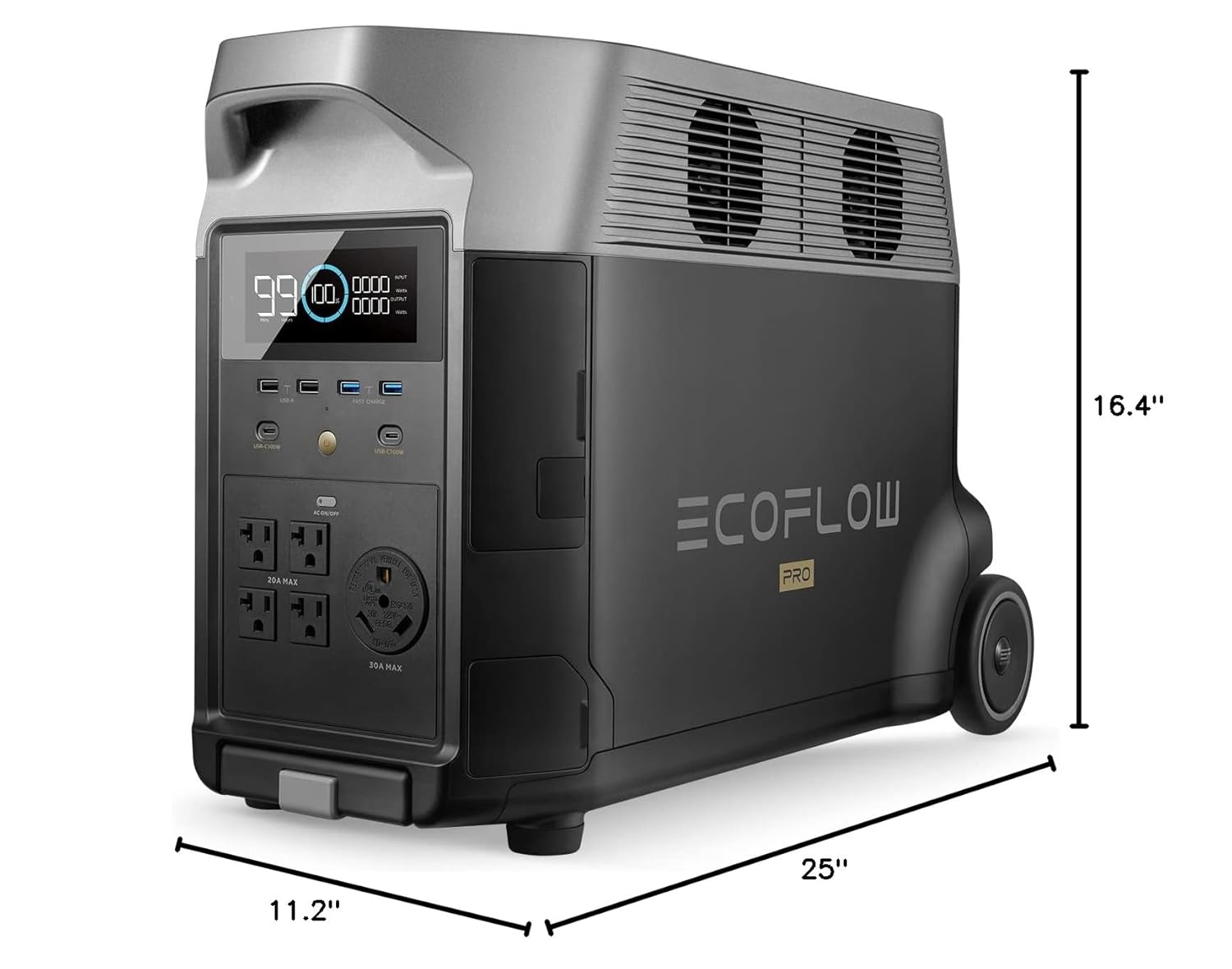 EF ECOFLOW Portable Power Station 3600Wh DELTA Pro, 120V AC Outlets x 5, 3600W, 2.7H Fast Charge, Lifepo4 Power Station