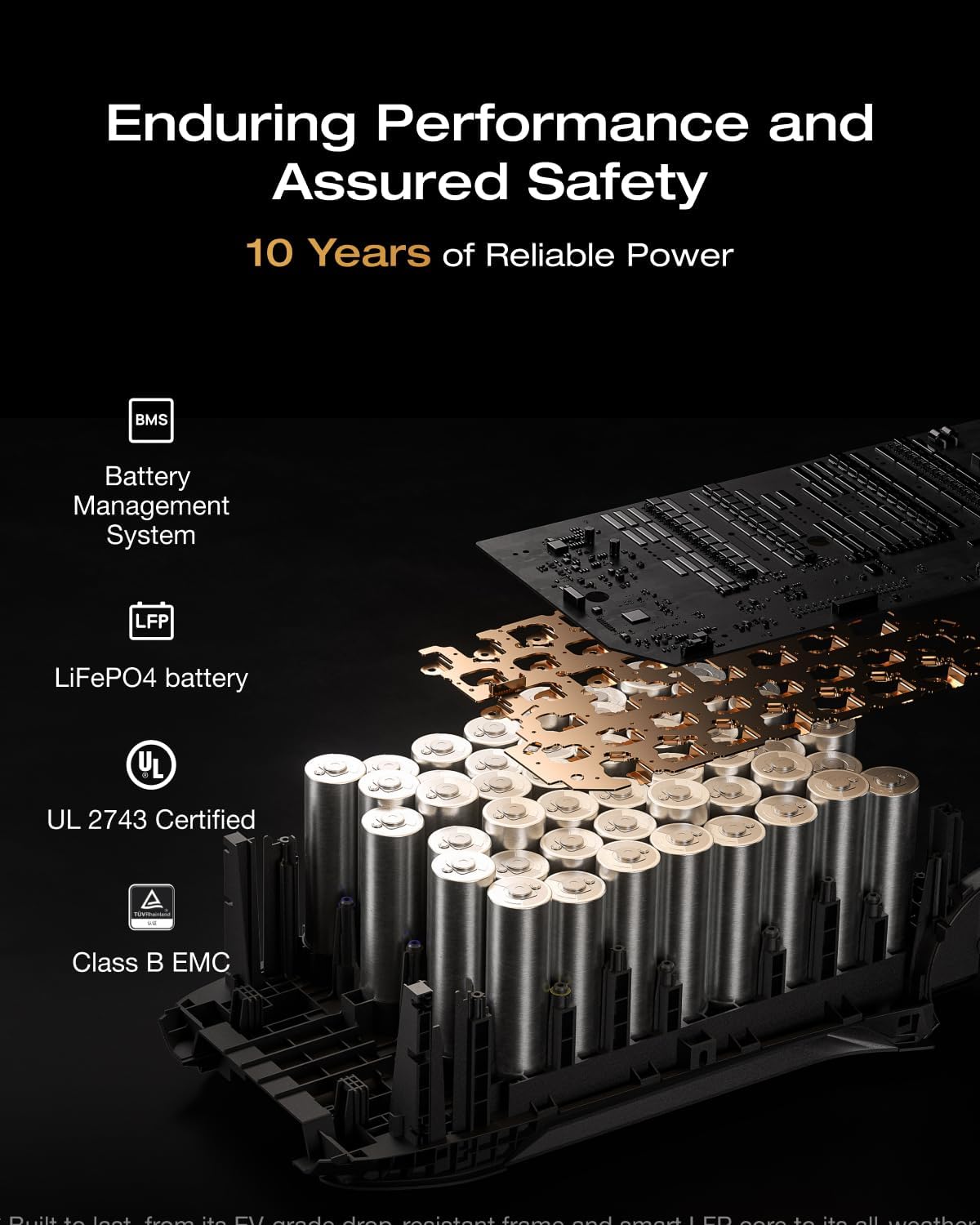 Built with durable LiFePO4 batteries that provide up to 3000 cycles, lasting around 10 years of everyday use. Comes with extended service support.