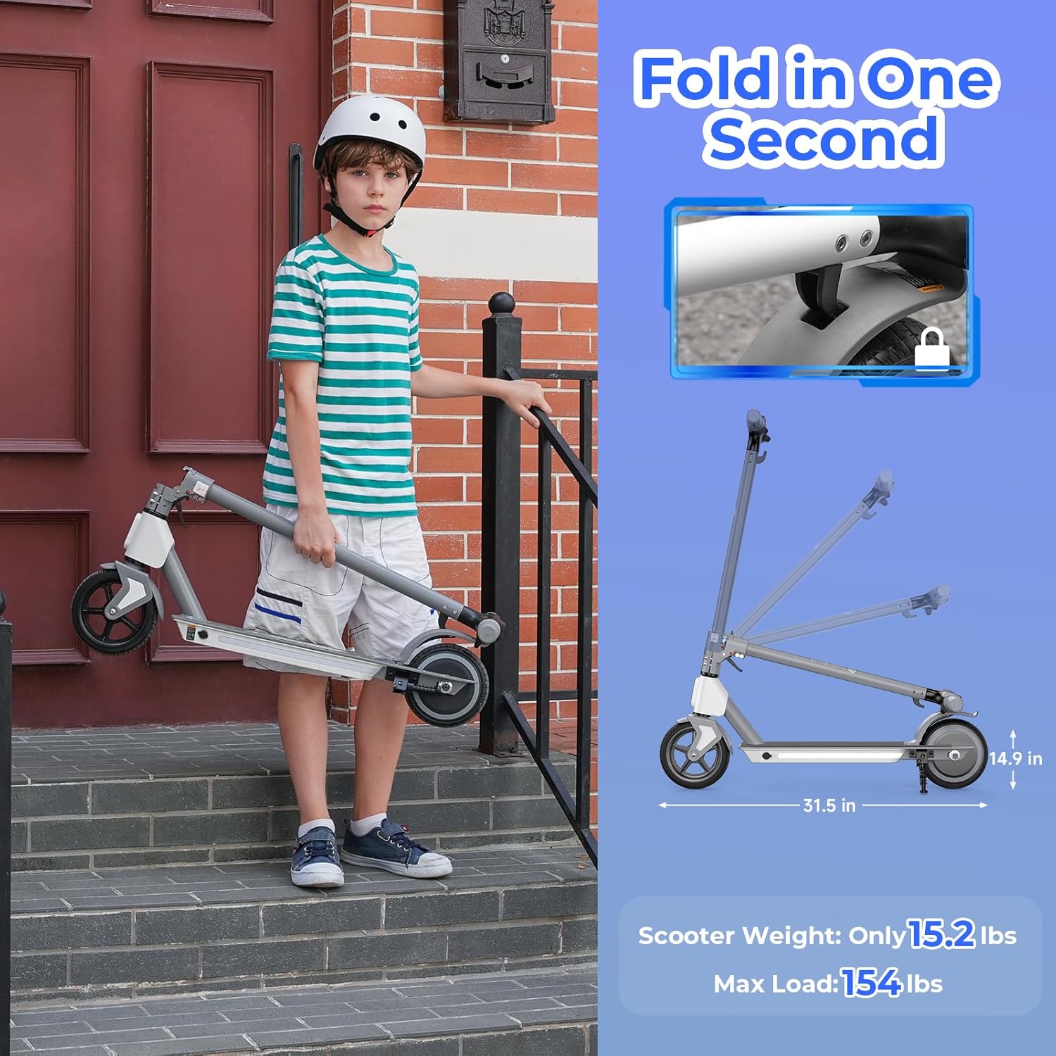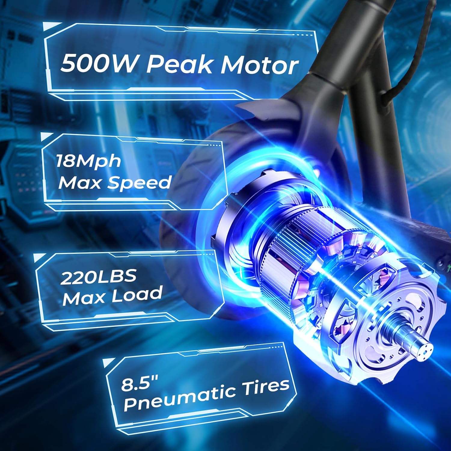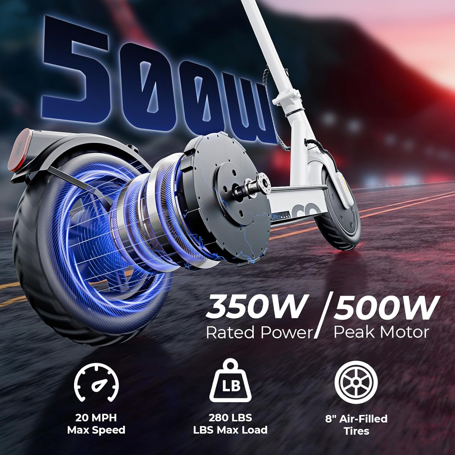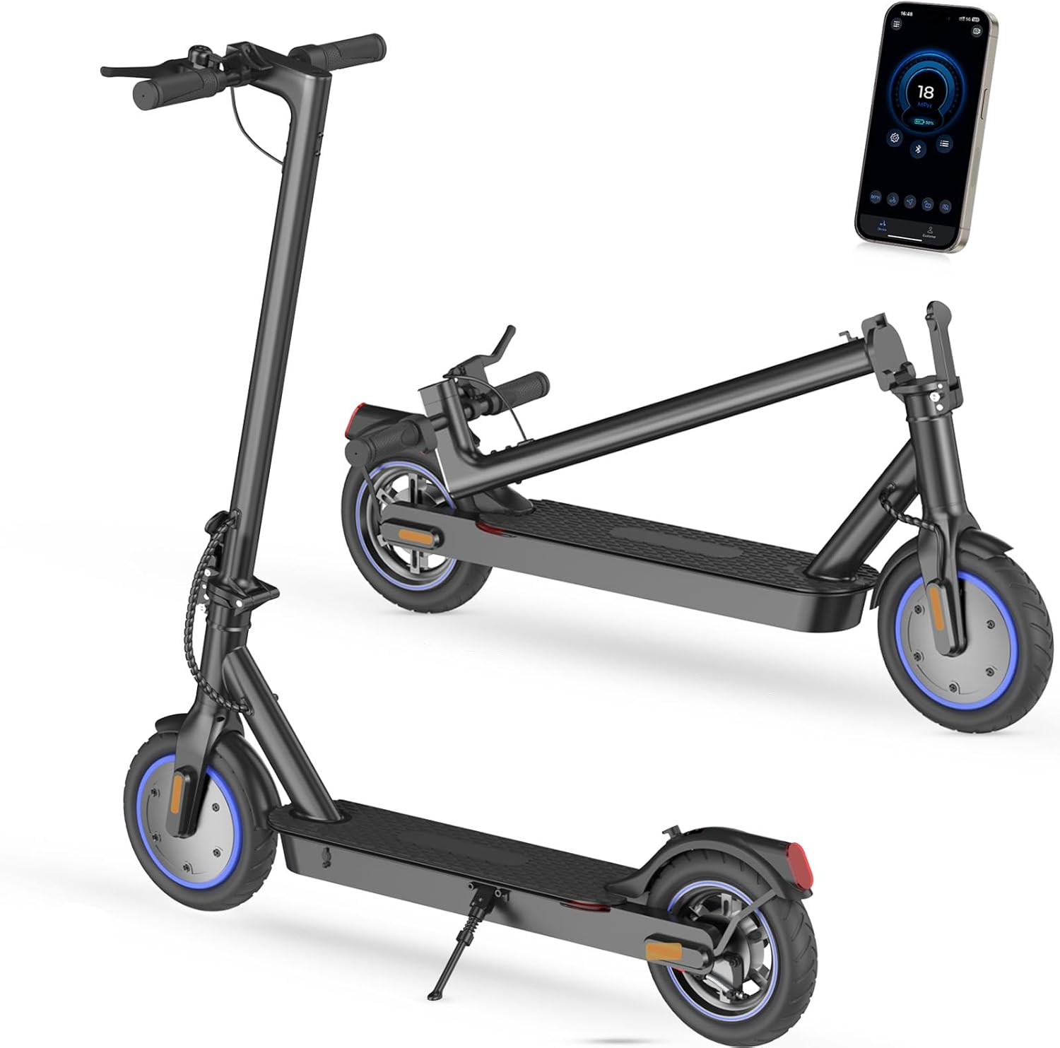 Powerful 500W Motor & 18 MPH Top Speed: Equipped with a 500W (350W rated) peak motor, this electric scooter reaches speeds up to 18 MPH, delivering smooth and efficient rides—perfect for daily commutes, city travel, and short adventures.