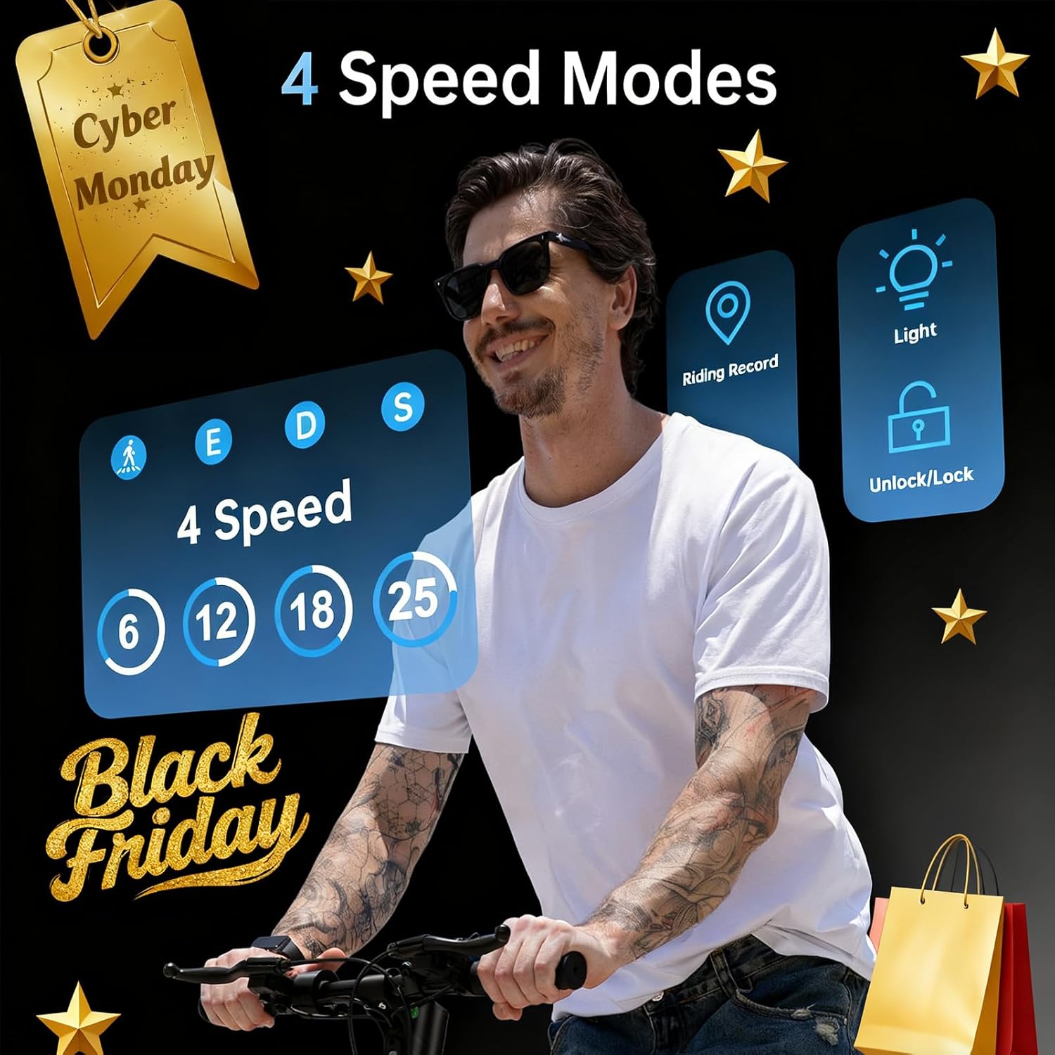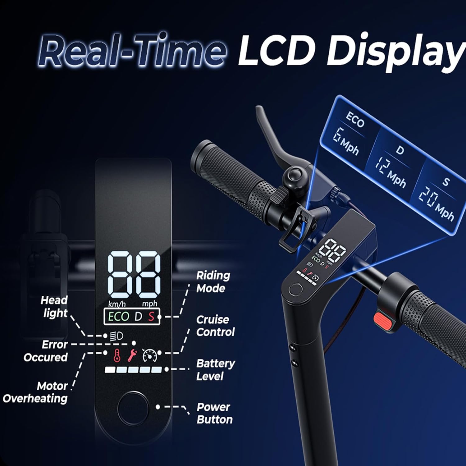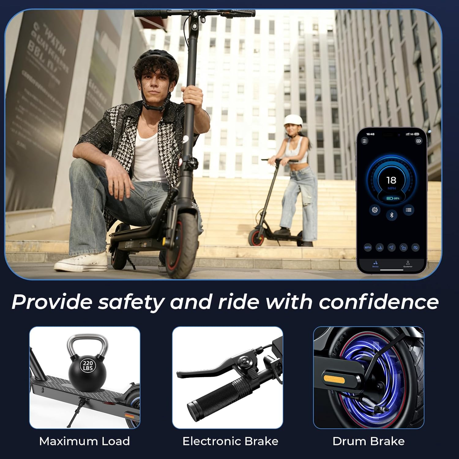 Double Braking & Enhanced Safety: Features both electronic front and rear disc brakes for reliable stopping power. Ultra-bright LED headlights and rear warning lights ensure visibility and control in low-light conditions or busy streets.