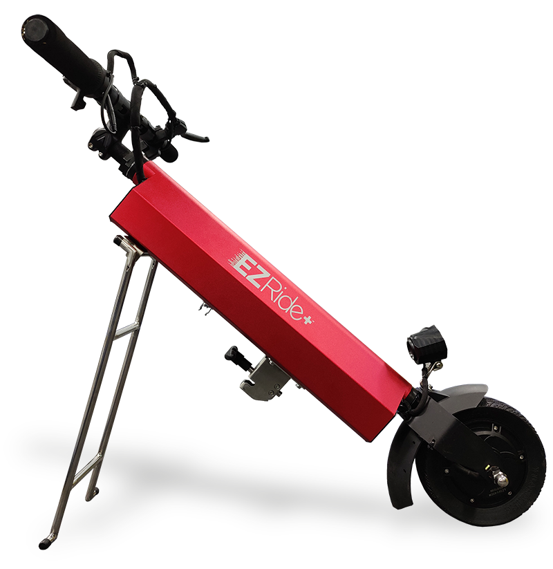 This state-of-the-art mobility device seamlessly integrates power assistance into most manual wheelchairs, providing users with unprecedented independence and mobility. Unlike conventional power mobility scooters, the EZ Ride+ is a lightweight and portable solution that is significantly more affordable than existing power attachments, scooters, and power chairs.