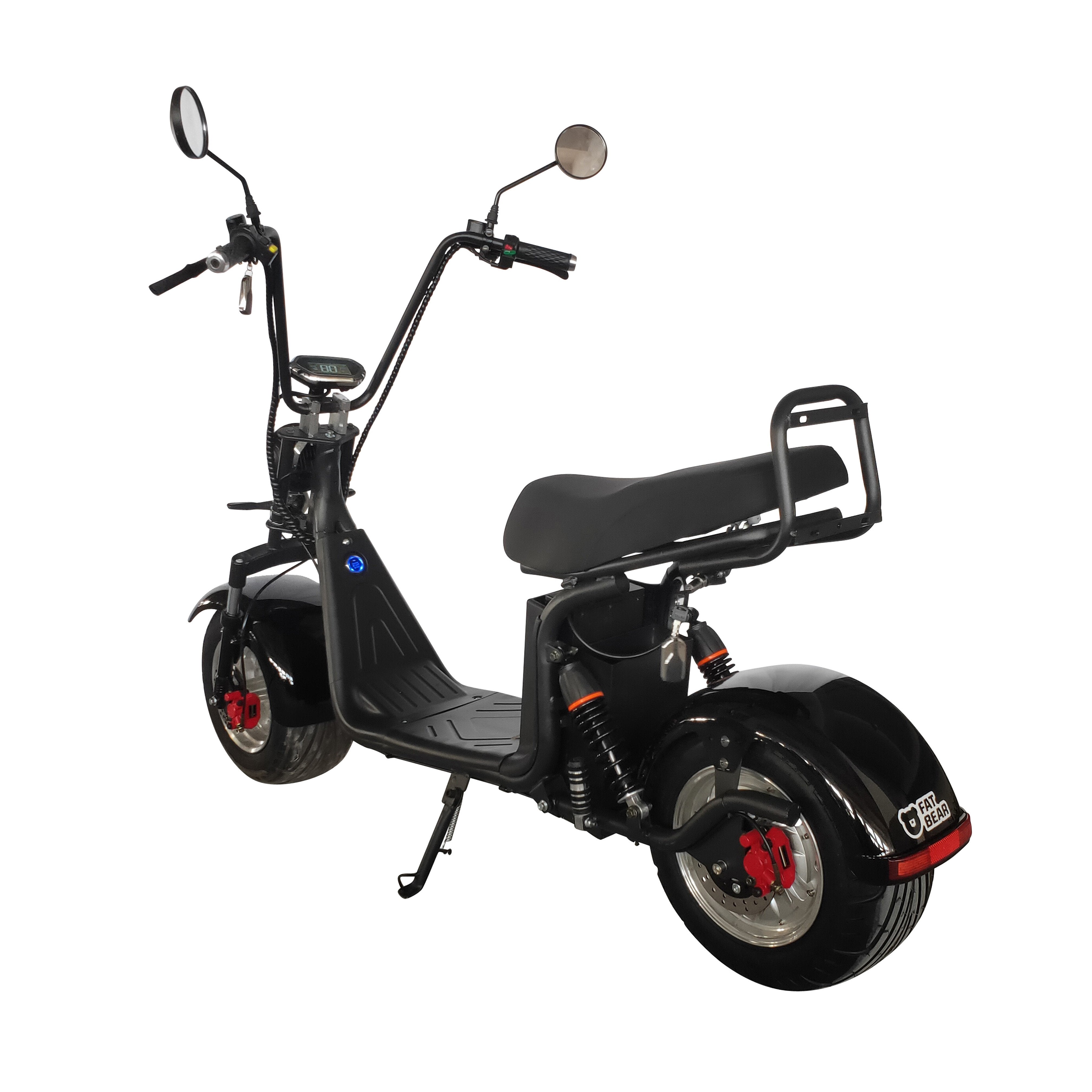 Fat Bear Fat City Electric Fat Tire Scooter by eDrift is a stylish and fun recreation vehicle with upgraded motor that eats through rugged terrain like a hungry bear through a picnic basket. The Fat Scout boasts front and rear suspension, aluminum wheels, and an upgraded stainless steel motor housing unit.