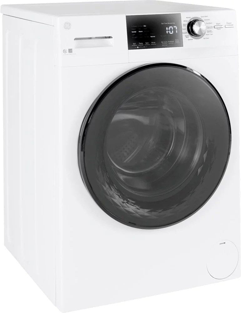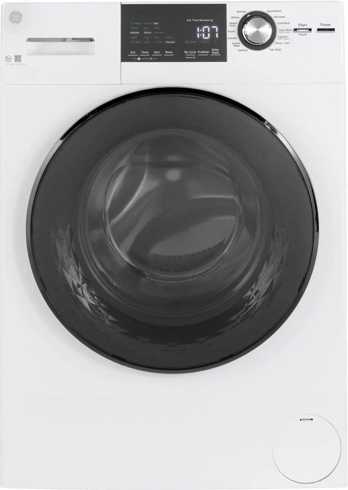 Get laundry done quickly with this 2.4 cu. ft. GE washer. Its steam function penetrates fabric for effective stain removal without harming your clothes, and the custom cycle option lets you personalize settings to suit your needs. This front-load GE washer has a user-friendly LED display for intuitive access to its functions.