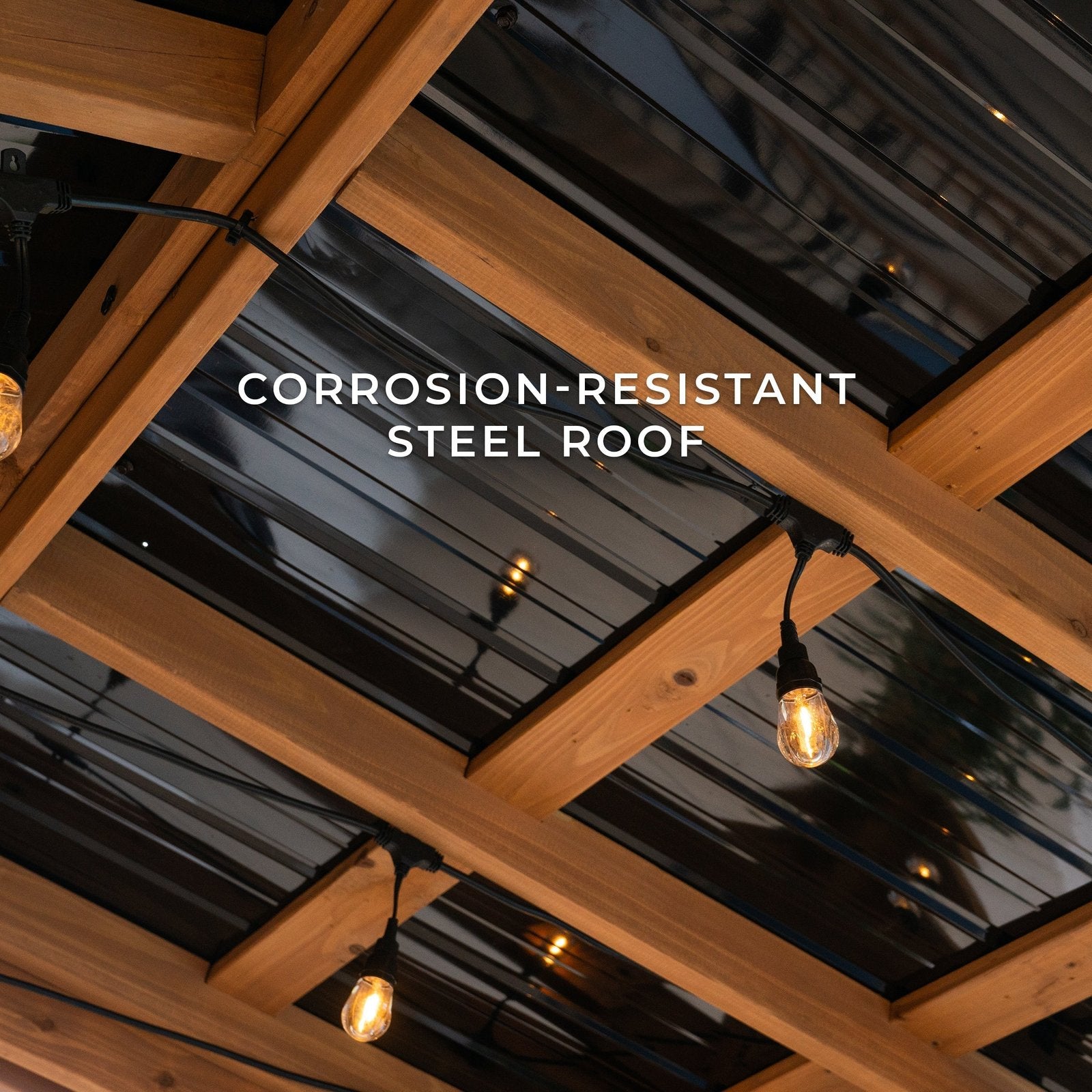 One glance at our Windham steel pergola and you’ll notice its style. One touch of its sturdy galvanized steel-structure and