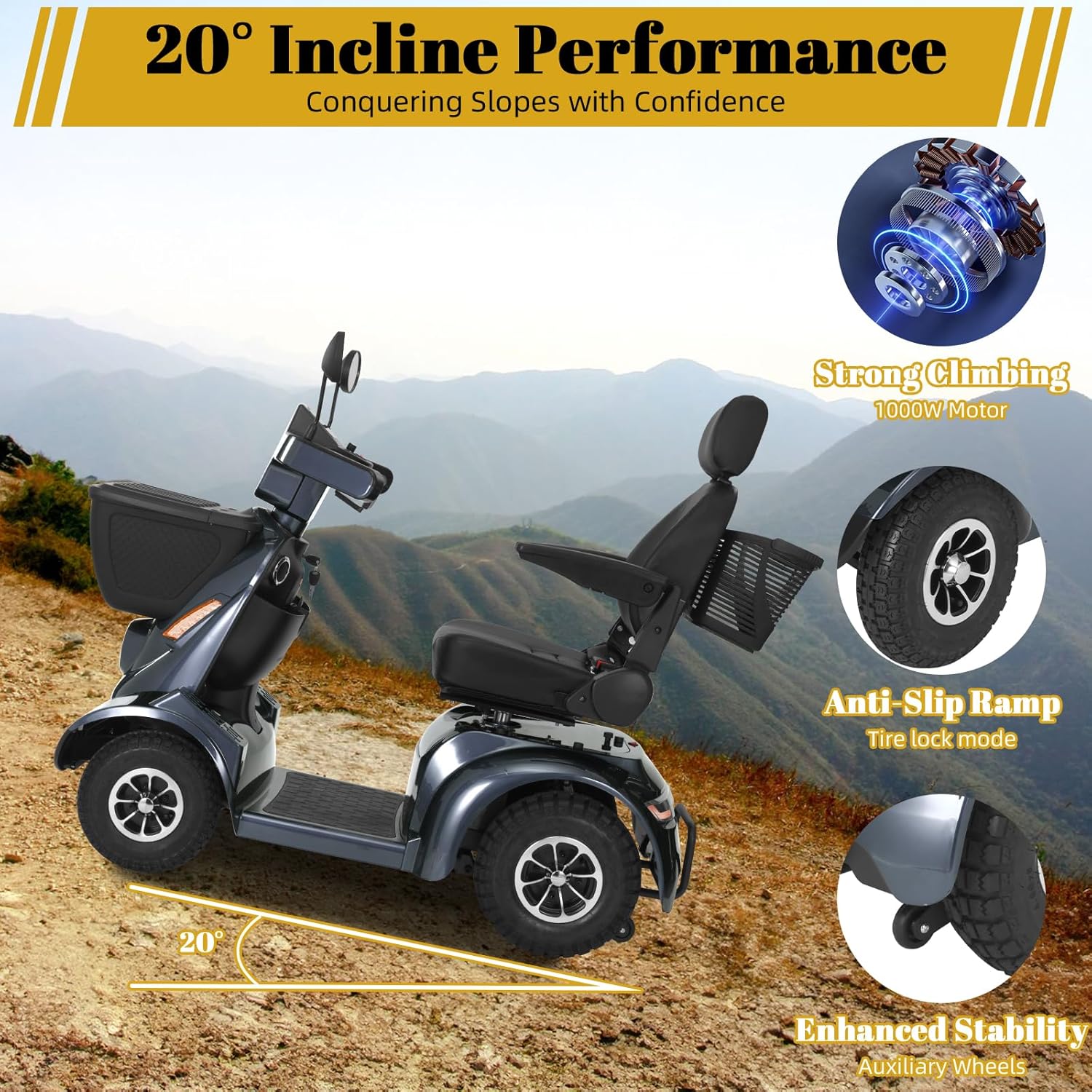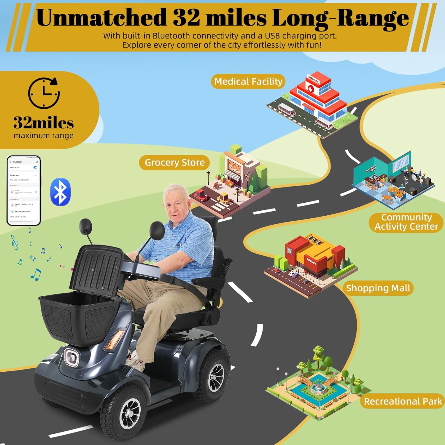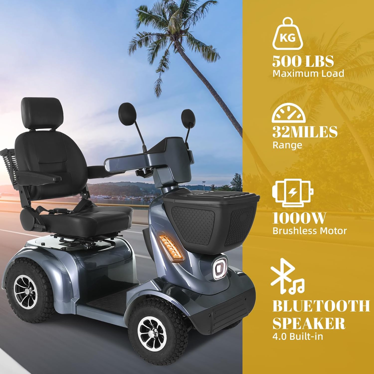 Heavy Duty Electric Mobility Scooter for Adults & Seniors, 16–32 Mile Range, 500–1000W, Off-Road
