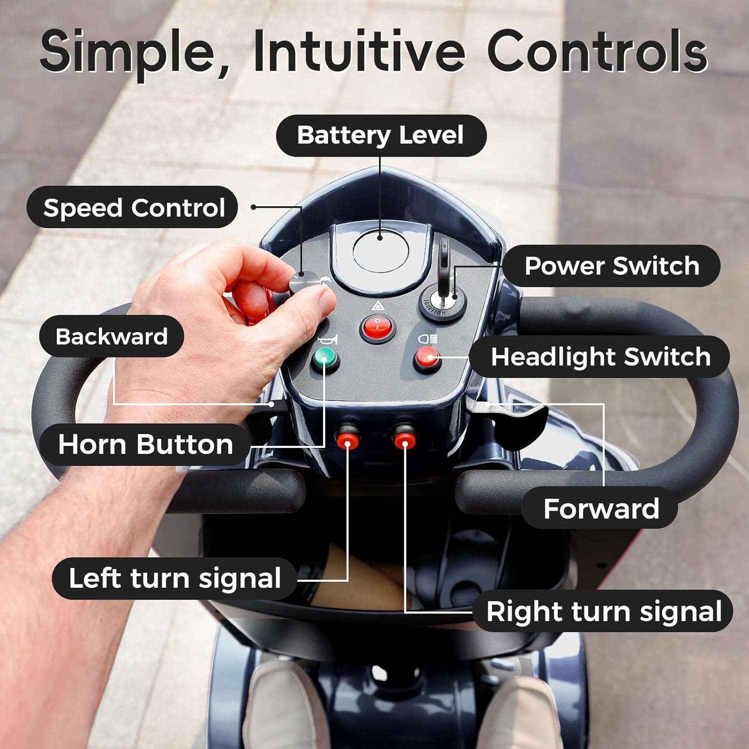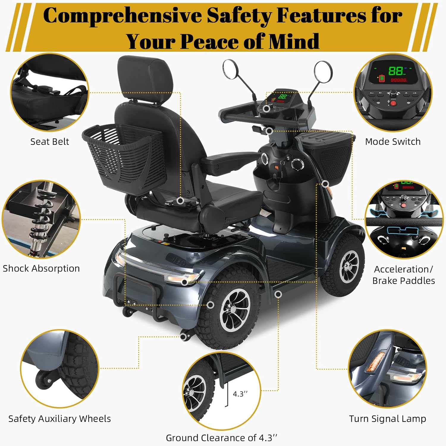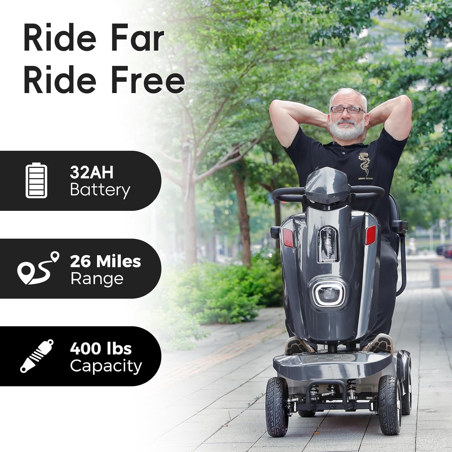Heavy Duty Electric Mobility Scooter for Adults & Seniors, 16–32 Mile Range, 500–1000W, Off-Road