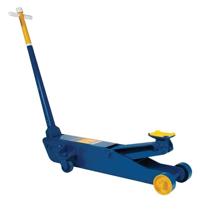 The Hein-Werner 10-Ton Long Chassis Service Jack is ideal for lifting trucks, trailers and buses by the axle, differential or frame. Handle adjusts to three pumping positions and the long chassis provides accessiblity to hard to reach points. Dual piston action provides speed to contact and power to lift. Long chassis makes it easy to access the hard to reach points. The handle adjusts to three pumping positions and the T-handle with release knob allows for exact positioning of load. Sealed hydraulic unit keeps out dirt, grime, grit and moisture for longevity. Features cast lift arm for heavy loads. This premium quality floor jack is Made In USA.