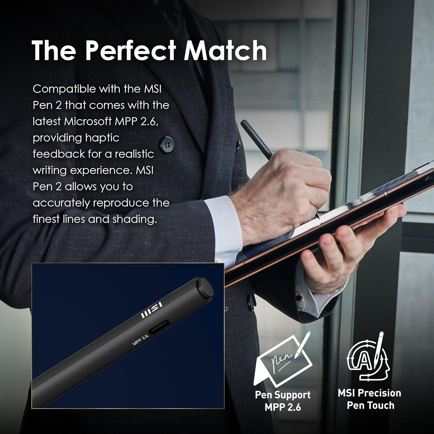 • MSI Pen 2 Support: Features MPP 2.6 technology with haptic feedback for realistic pen touch, plus quick 5-minute charging for up to 10 hours of usage via USB-C.
