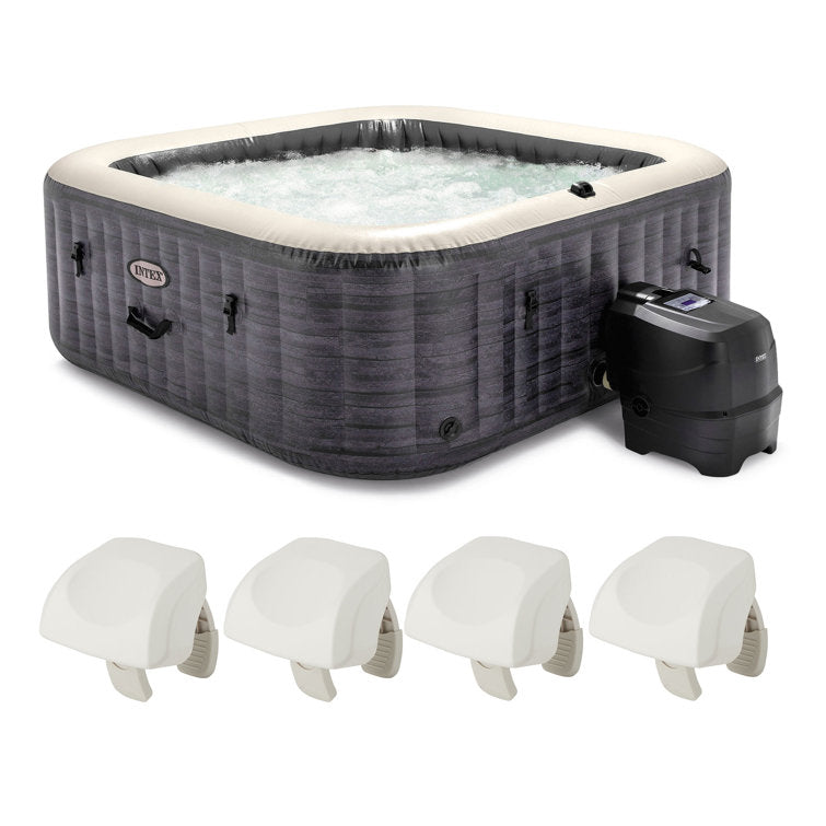 Let your worries bubble away as you unwind in the Intex PureSpa Plus Portable Inflatable Hot Tub with 4 Foam Headrest Pillows. The PureSpa provides relaxation at the touch of a button for up to 6 people with its easy-to-use wireless, removable control panel and Intex Link Spa Management app to control the panel using your smart device. 140 high-powered bubble jets surround the interior of the spa while the heating system adjusts to fit your preferences. Step into that warm water, lean your head back and prepare for the ultimate relaxation experience. With the Intex 28505E PureSpa Foam Headrest, you will upgrade your already great spa experience. Crafted out of soft, polyurethane foam, this headrest is a must-have accessory for any inflatable spa or hot tub. If you’ve always wanted a hot tub without permanently taking up space on your patio, this PureSpa Plus hot tub with 4 headrest pillows is a relaxation game-changer.Let your worries bubble away as you unwind in the Intex PureSpa Plus Portable Inflatable Hot Tub with 4 Foam Headrest Pillows. The PureSpa provides relaxation at the touch of a button for up to 6 people with its easy-to-use wireless, removable control panel and Intex Link Spa Management app to control the panel using your smart device. 140 high-powered bubble jets surround the interior of the spa while the heating system adjusts to fit your preferences. Step into that warm water, lean your head back and prepare for the ultimate relaxation experience. With the Intex 28505E PureSpa Foam Headrest, you will upgrade your already great spa experience. Crafted out of soft, polyurethane foam, this headrest is a must-have accessory for any inflatable spa or hot tub. If you’ve always wanted a hot tub without permanently taking up space on your patio, this PureSpa Plus hot tub with 4 headrest pillows is a relaxation game-changer.Let your worries bubble away as you unwind in the Intex PureSpa Plus Portable Inflatable Hot Tub with 4 Foam Headrest Pillows. The PureSpa provides relaxation at the touch of a button for up to 6 people with its easy-to-use wireless, removable control panel and Intex Link Spa Management app to control the panel using your smart device. 140 high-powered bubble jets surround the interior of the spa while the heating system adjusts to fit your preferences. Step into that warm water, lean your head back and prepare for the ultimate relaxation experience. With the Intex 28505E PureSpa Foam Headrest, you will upgrade your already great spa experience. Crafted out of soft, polyurethane foam, this headrest is a must-have accessory for any inflatable spa or hot tub. If you’ve always wanted a hot tub without permanently taking up space on your patio, this PureSpa Plus hot tub with 4 headrest pillows is a relaxation game-changer.