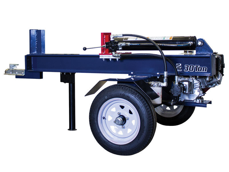 This high capacity commercial grade log splitter is designed for tough applications in the horizontal position. This Iron and Oak wood splitter provides 30 tons of log crushing force. There isn’t much this log splitter can’t split. The larger wheels make this log splitter excellent for towing and rolling over obstacles.