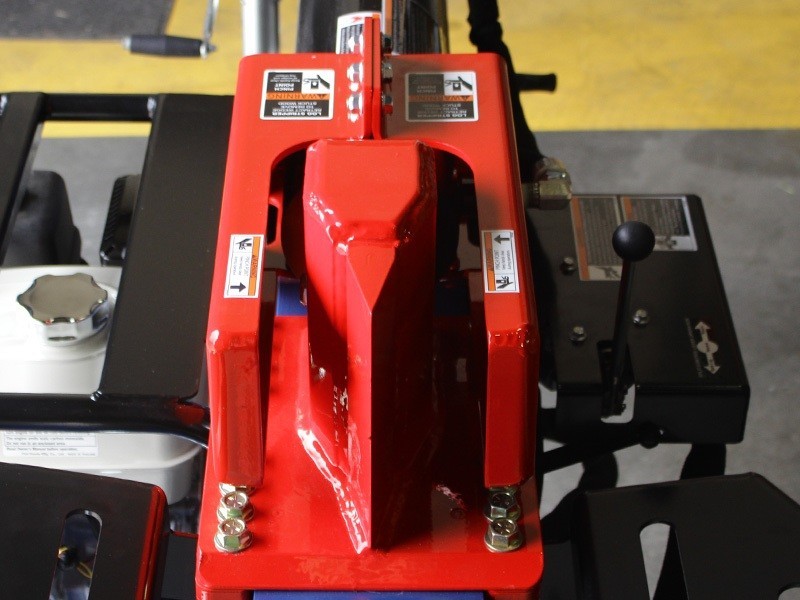 This Iron and Oak offers a unique splitting wedge that provides wider splitting separation, minimizing splitting distance and reducing cycle time.  Auto idle reduction saves fuel and improves engine life. A full size log table capable of splitting up to 24” logs in length, eliminates the need to bend down to pick up split wood (save your back!).