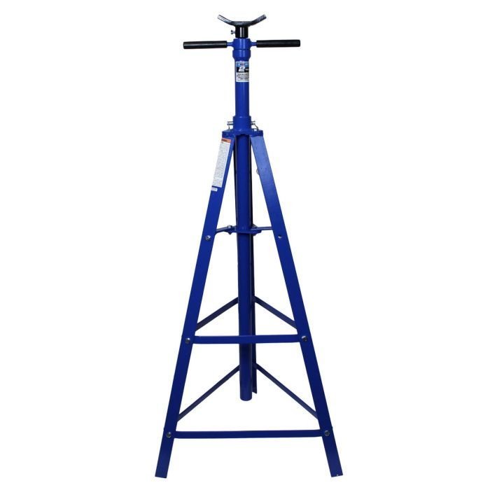 The K Tool 2 Ton Under Hoist Jack Stand is designed to help stabilize a vehicle suspended by an above-ground lift. The supporting range is from 49″ to 79-3/4″. Acme threaded screw for 8″ fine adjustment. Bearing mounted spin handle for easy raising and lowering of a screw. 24″ triangle-shaped base and 3.25″ x 3.25″ saddle provide additional stability. Complies with ASME PASE/2014 Safety Standards. Under hoist stands work by holding up your work from the bottom. They are thin and easily portable, allowing you to set them up when you need them and store them anywhere when you don’t.