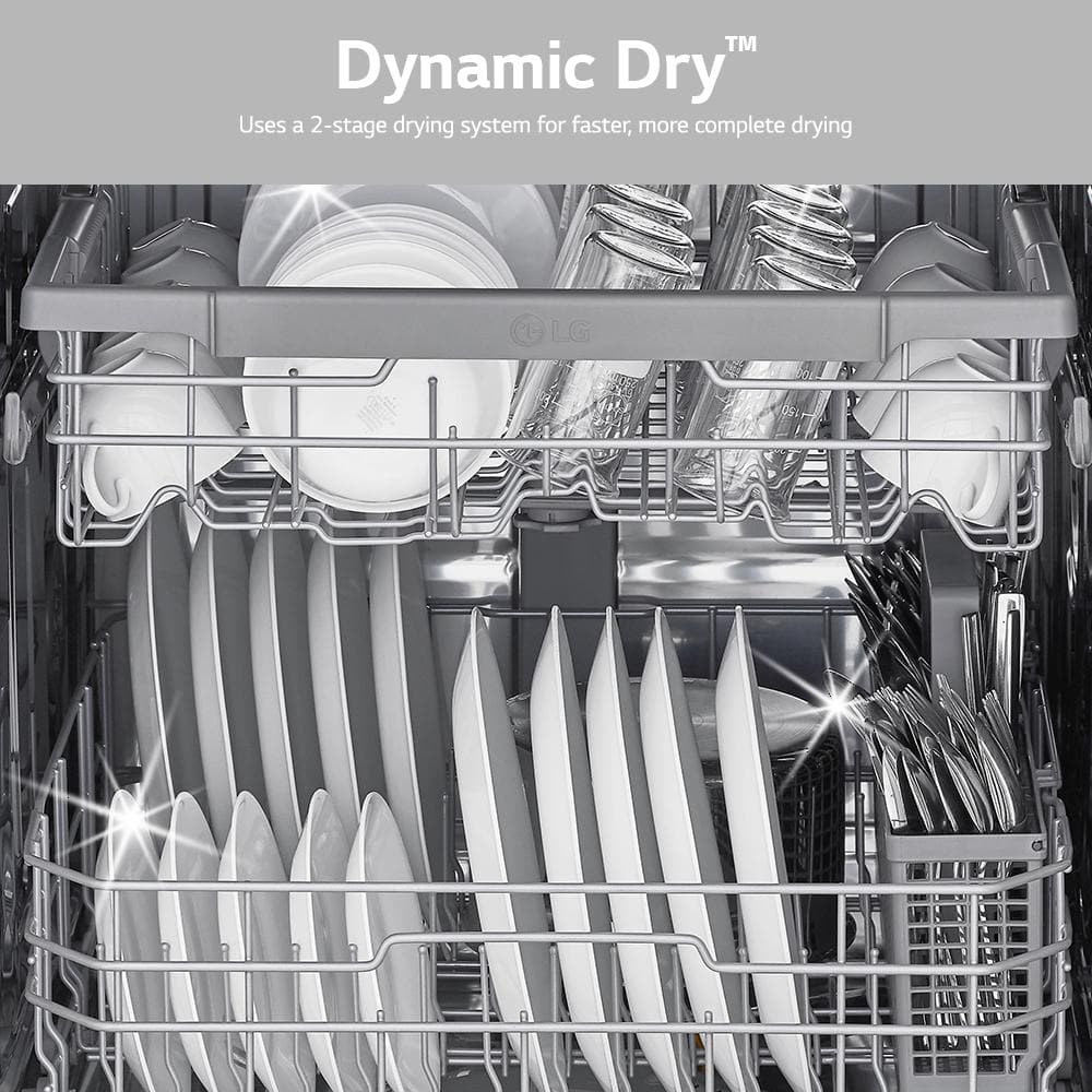 • Dynamic dry technology on all LG dishwashers uses a 2-stage drying system for faster, more complete drying