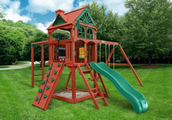 An adventure in sliding and climbing is waiting for your kids with the Five Star II Swing Set by Gorilla Playsets. This set includes fun filled features like an Alpine Wave Slide™, a Trapeze Swing, and TWO Deluxe Swing Belts. It even includes a Chalkboard for writing fun messages. The semi-enclosed clubhouse includes decorative window inserts and is protected with a tongue and groove wood roof. The wait is over, order yours today!