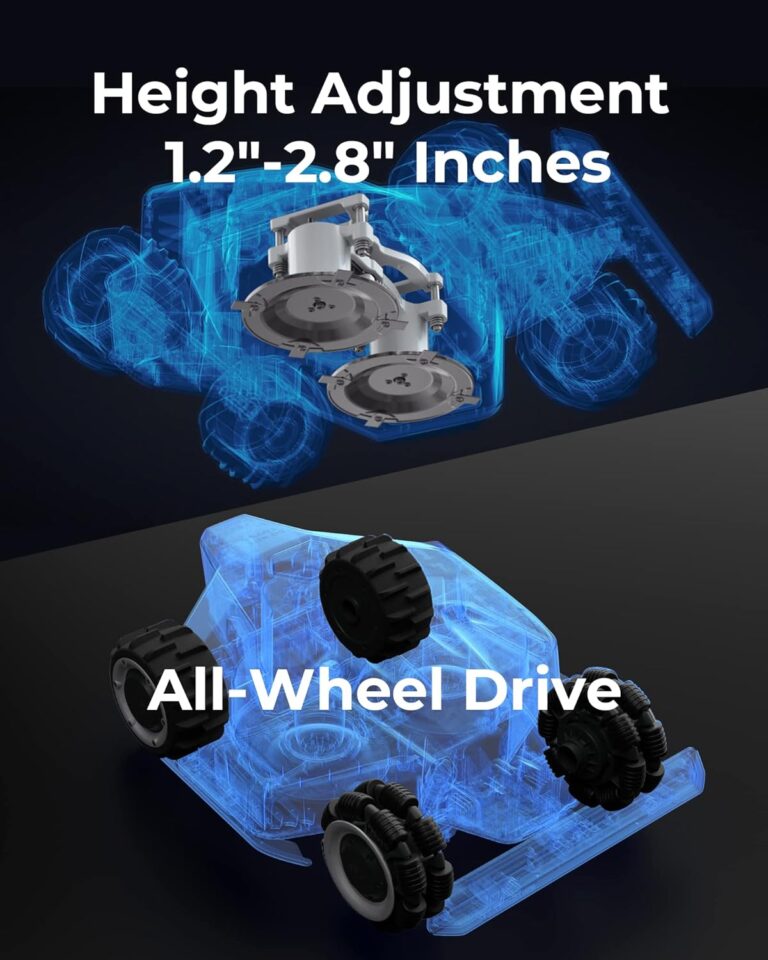 - IN-APP MULTI-ZONE MANAGEMENT: With the Mammotion App, you can easily set up no-go-zone and mowing tasks for multiple working areas, and create channels between. Set different schedules, cutting modes and cutting heights of 1.18-2.8inch for each mowing zone. Enjoy your vacation and control your mower anywhere.
