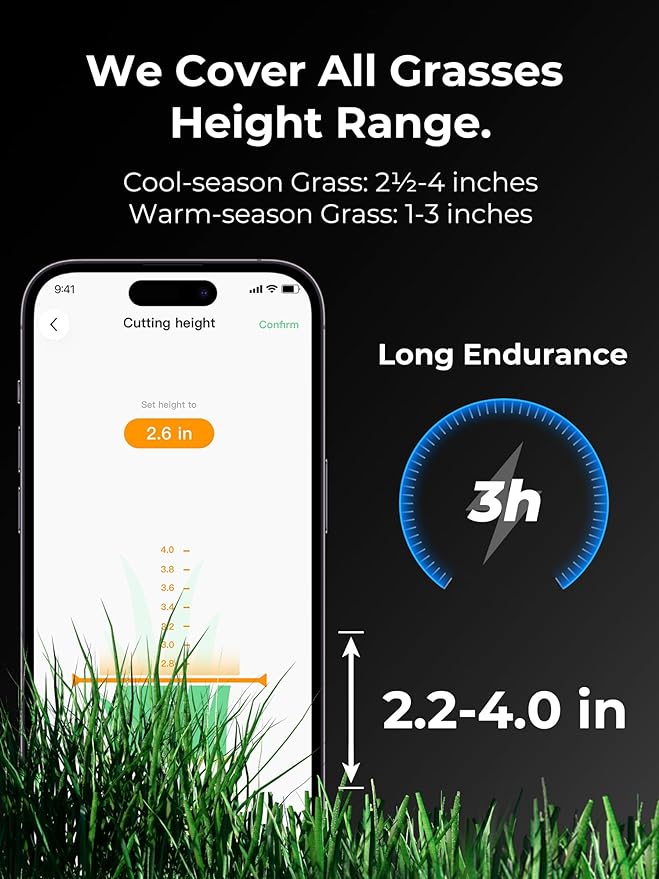 • APP& Voice Control, Mowing is Breeze: Customize different cutting heights, mowing modes and frequencies for multi-zone or check the mowing progress and location from anywhere via your smartphone with the Mammotion app or integrate the automatic mower into your smart home setup with Amazon Alexa or Google Home.
