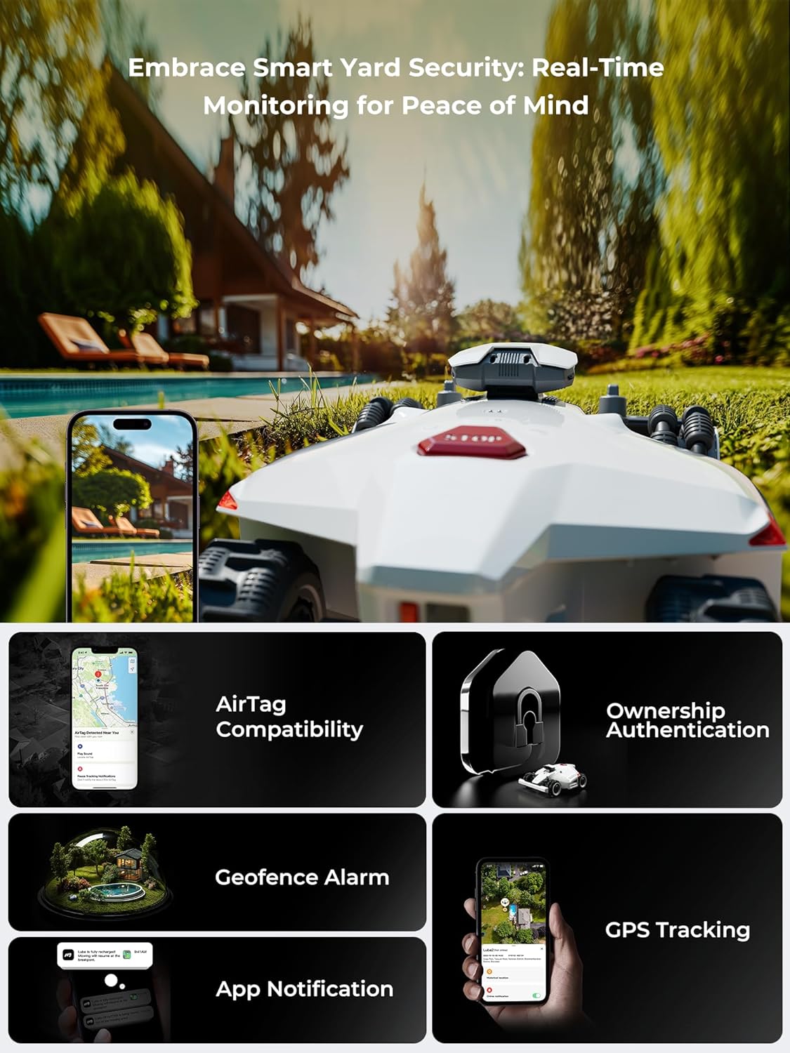 • GPS Theft Protection, Never Worry About Your LUBA Lost: Equipped with anti-theft system and a built-in alarm system, if someone took your Mammotion LUBA 2 AWD 5000H lawn robot, you can instantly secure and track its location through the Mammotion App. The individual activating the device initially becomes its rightful owner. Ownership Authentication supports the “lost” feature, unauthorized users cannot operate the machine.