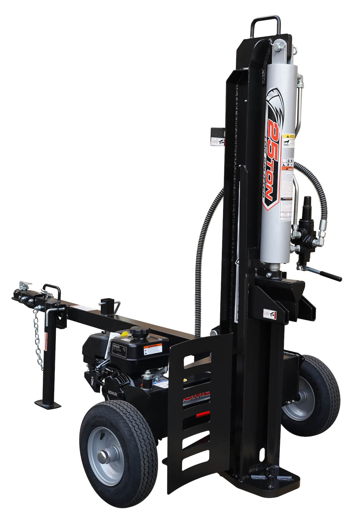 Lumber Jack™ log splitters are available in a range of sizes to suit any sized project. Each splitter is equipped with a trailer hitch for easy towing. Capable of splitting rounds in both horizontal and vertical positions, our 25-ton log splitter boasts a hasty 11.5 second cycle time and time-saving automatic cylinder and valve return for quickly and safely reducing hardwood or softwood rounds to firewood. The 25-ton log splitter has a hardened steel eight inch wedge and built-in log cradle for simpler splitting. Powered by a 196 cubic centimeter 6.5 horse power Kohler® engine and a 6.5 gallon hydraulic capacity, our 25-ton log splitter will outperform and outlast the competition.