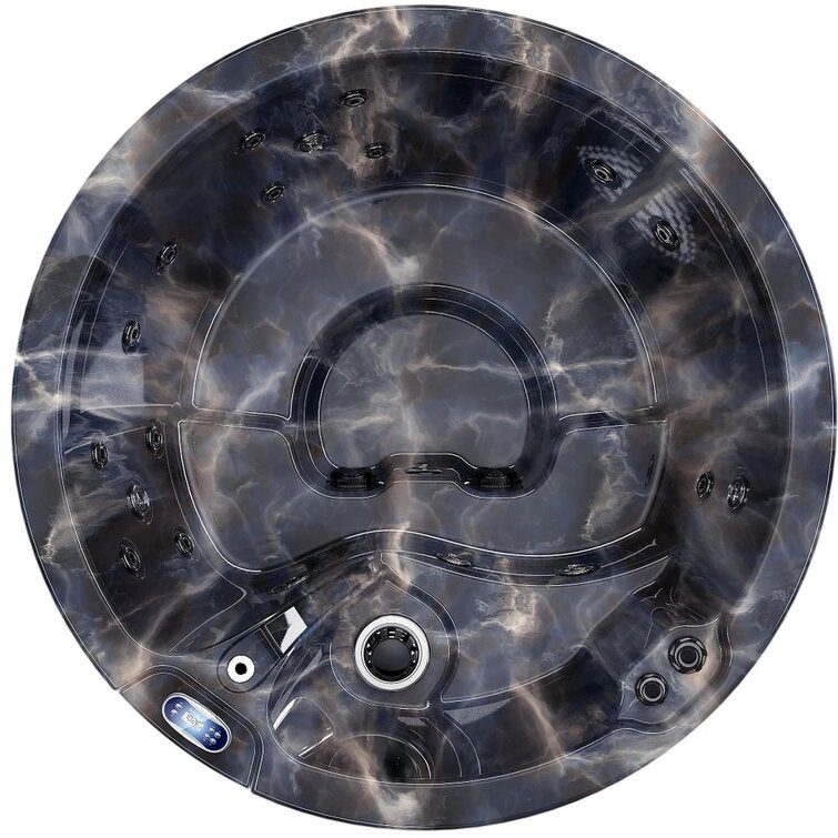 Product TypeStandardMaterialAcrylicMaximum Capacity5Overall ShapeRoundVoltage110 VoltAmperage15 AmpsMinimum Temperature80FMaximum Temperature104FNumber of Jets39Adjustable JetsYesNumber of Pumps2Pump Horsepower3Ozonator IncludedYesBuilt-In Seating IncludedYesLight IncludedYesCover IncludedYesSteps IncludedNoFilter IncludedYesWater Capacity375 gallonsCompatible with Salt WaterNoSlip ResistantYesAntimicrobialYesUV ResistantYesMold / Mildew ResistantYesFreeze ResistantYesCorrosion ResistantYesSupplier Intended and Approved UseResidential UseImportedYesProduct CareSee Owner’s ManualInterior Color (Midnight Opal Interior Color)Midnight OpalInsulatedYesLockable CoverYesLED LightYesAssembly