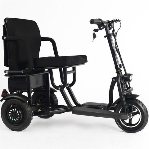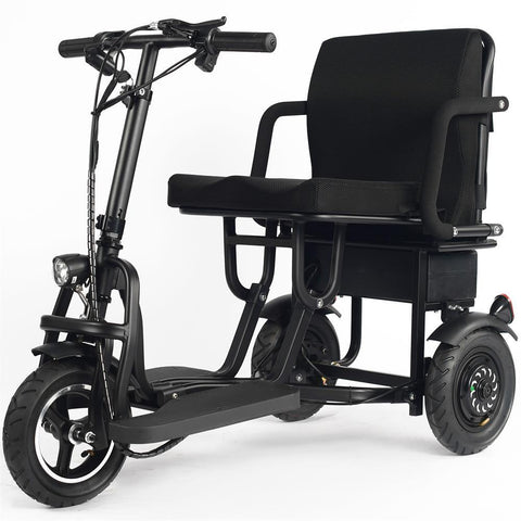 Cruise the streets, visit your favorite spots, cut your commute, and go to work or school with the MotoTec Folding Mobility Electric Trike ! This ultra-compact bike comes with two 350-watt hub motors in the rear wheels, giving this electric trike plenty of power and an exciting character. Compared to many electric bikes, the MotoTec Folding Trike respectable ‘horsepower’ that makes it exciting. This scooter has a simplified metal frame and a padded low-rise seat that make it comfortable and easy to ride even by beginners. If you are looking for a commuter bike that is fun to ride, get the MotoTec Folding Mobility Electric Trike!