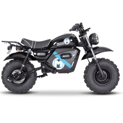 Introducing the MotoTec 60v 1500w Lithium Electirc Mini Bike! Just like the ones your parents used to drive, only safer and easier to use. Powered by a brushless 1500 watt electric hub motor, twist throttle for easy operation, large front headlight and key start. With it’s rugged steel frame and huge knobby tires, this mini bike is built tough to handle the roughest of terrain.