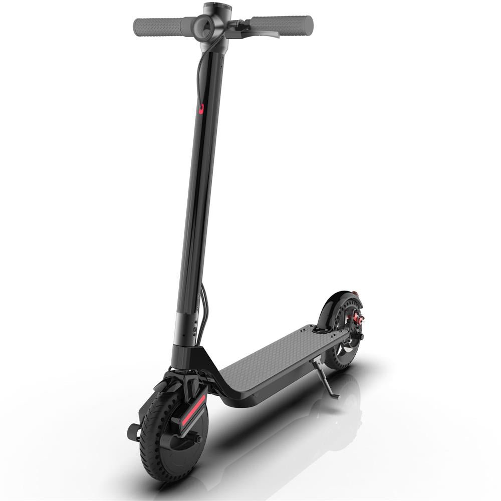 The MotoTec 853 Plus Electric Scooter, the ultimate commuter ride. Powered by a 36 volt 7.5ah Lithium Battery pack and a 350 watt motor, this scooter is fast and light. Comes standard with front and rear patented spring suspension, solid puncture proof 8.5 inch tires, foldable aluminum & magnesium alloy frame, silicone non-slip foot deck, LED headlight & taillight, electronic brake and digital display.