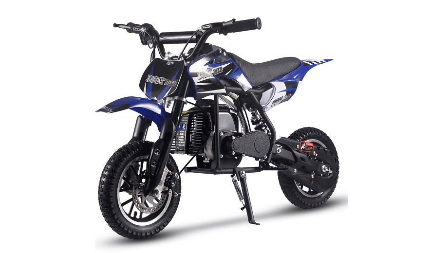 The MotoTec Alien 50cc Kids Dirt Bike – The perfect kids starter dirt bike. The latest generation of 50cc mini bike engines are faster, torquier, more reliable and even easier to set up and start than ever before. 2-Stroke engines are preferred as they provide almost double the power of the same size 4-stroke. Easy pull start, improved carburetor and all of the standard safety features, support and reliability MotoTec provides.