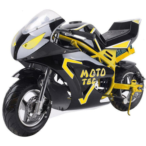 This high-performance electric bike is appropriate for leisure and as a toy for big boys. The MotoTec GT is ideal for use on hard surfaces, including pavement, sidewalks, or driveways. Because it is electric, it is quiet but has plenty of power. The GT Pocket Bike has respectable ‘horsepower’ that is seen in other more expensive bikes. The bike comes in stylish blue, red, and yellow color schemes.
