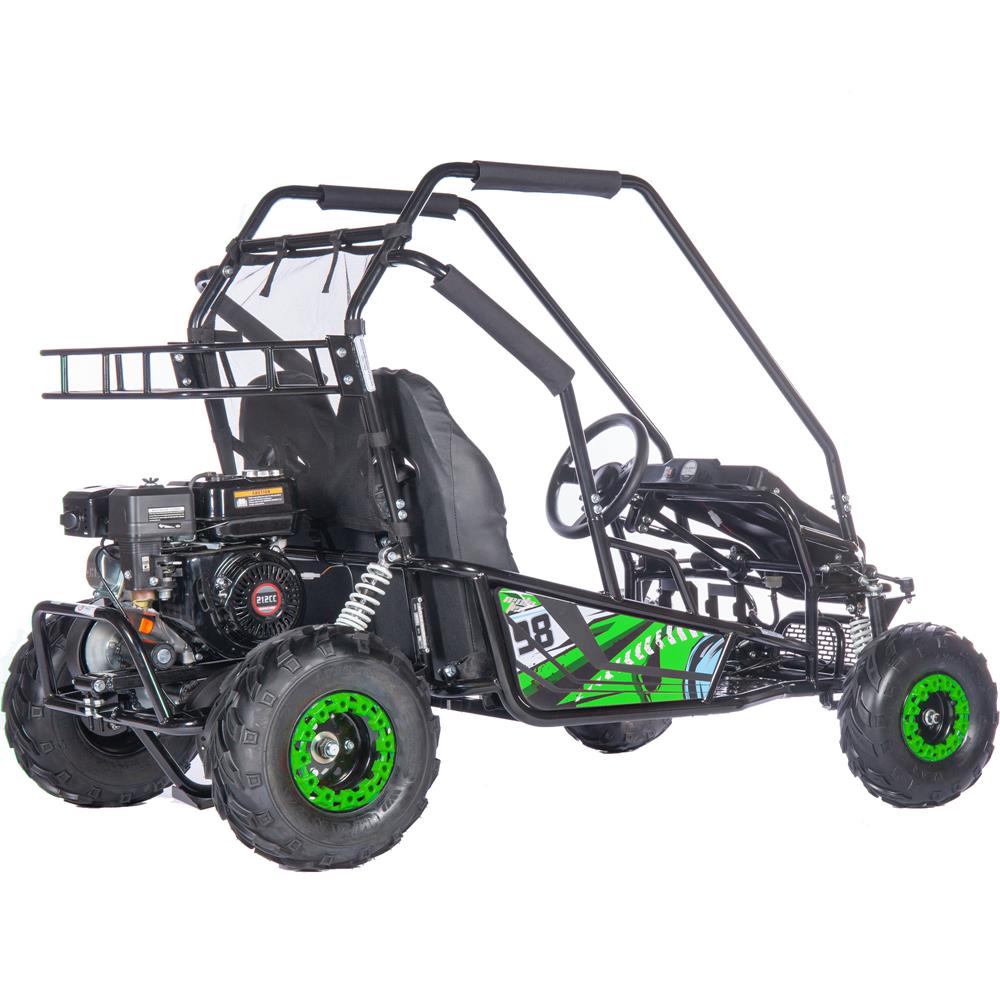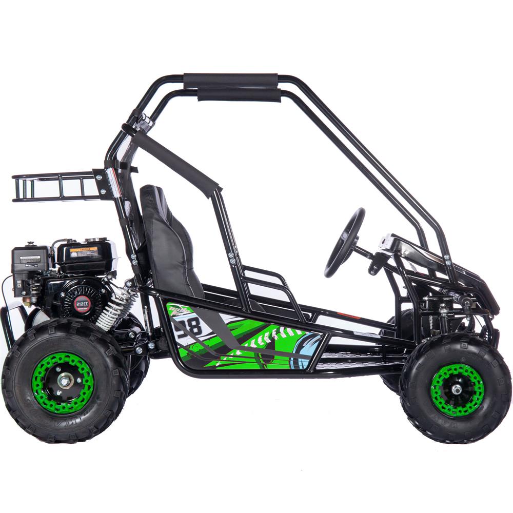 Introducing the new MotoTec Mud Monster XL 212cc 4-stroke 2 Seat Kids Off Road Go Kart with Front and Rear Suspension! Featuring a powerful 212cc 4-Stroke OHV Engine, padded roll cage safety bar, positraction, metal throttle/brake pedals, adjustable seat, more seating room than the competition and four-point safety harness. This go kart is rugged and built to last. Comes with easy pull start system, CVT torque converter, rear storage rack, low pressure tires for excellent grip and ride comfort.