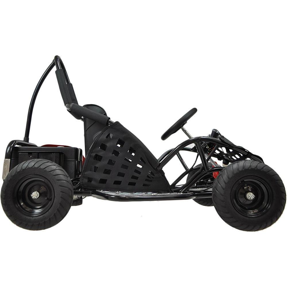 • The MotoTec Off Road Electric Go Kart is an excellent choice if you are looking for an exciting ride that is usable on the road and on dirt. It is capable of off-roading, and therefore perfect for kids that need a fun electric ride at an affordable price. The Off Road features a true go-kart design with a rigid frame and off-road knobby tires. This affordable and compact go kart comes with a heavy-duty metal full roll cage with safety bars and a beefy motor to match. This kart is highly recommended for leisure and a quick personal transport to work and school.