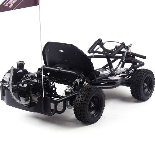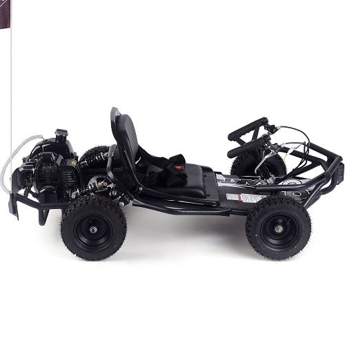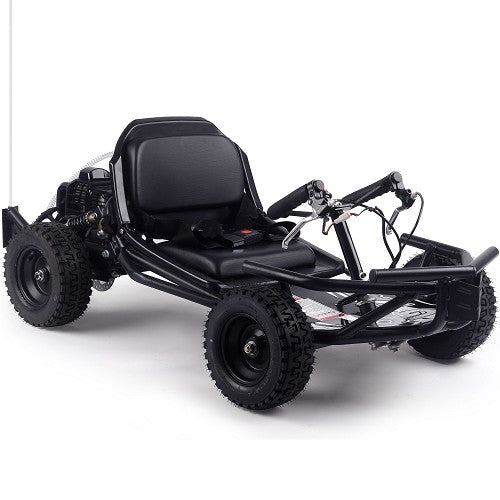 The MotoTec 52cc Sandman Go Kart is the ultimate kid ride! Great for driveway and parking lot fun, cruise around cones and speed through trails with ease. Comes standard with rear suspension, rear disk brakes and large 9.5 inch front & rear pneumatic tires.
