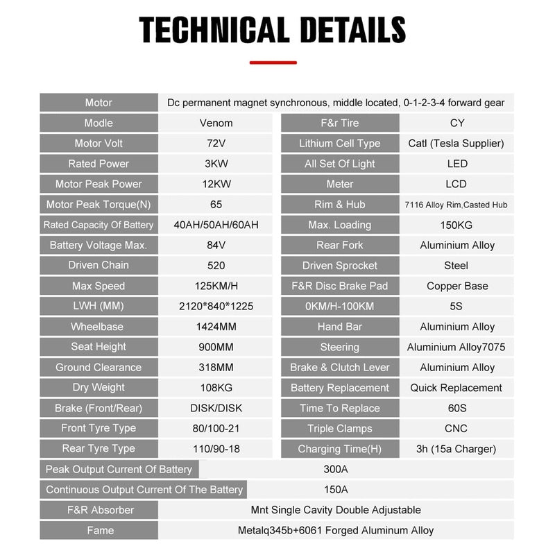 Battery: 72v 50ah Lithium Ion (quick release)