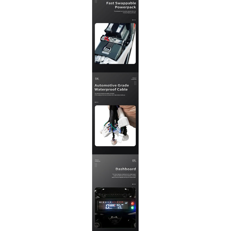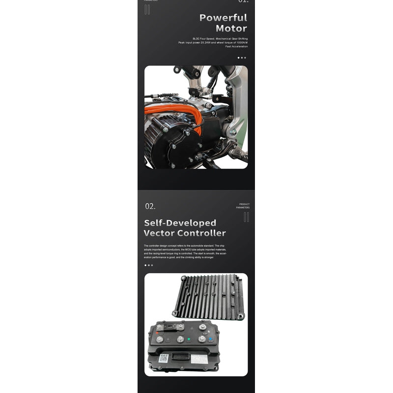 After 2 long years of research and development, we bring to you. It’s powertrain is capable of delivering a top speed of 77 mph and 4-5 hours of trail riding or 30 minutes of all-out racing. Comes standard with a Aluminum Frame, DC Permanent Magnet Motor, 4 Manual Gears (0-1-2-3-4) and Reverse.