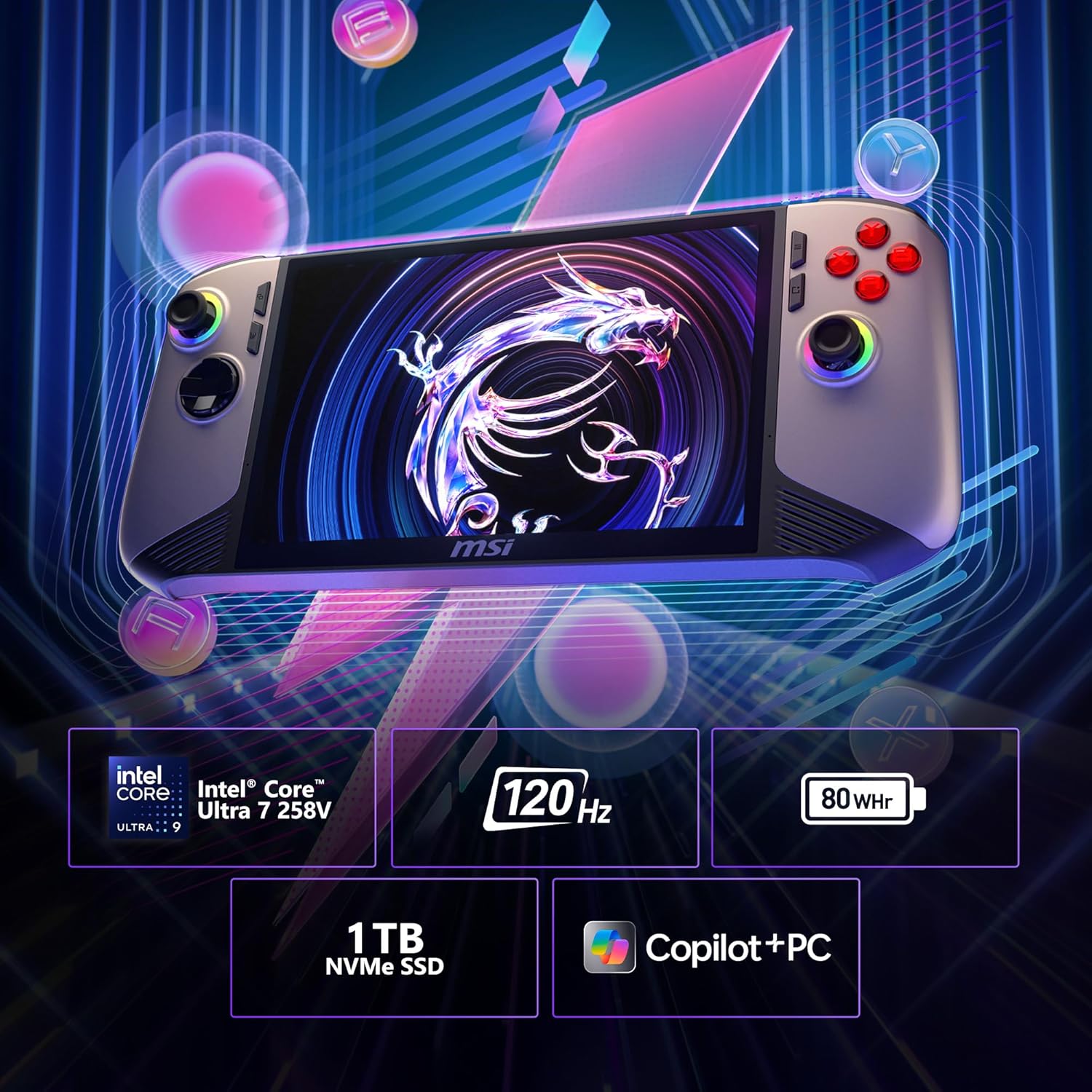 MSI Claw PC Gaming Handheld Intel Ultra 7-258V, 8″ FHD 120Hz Display, 32GB