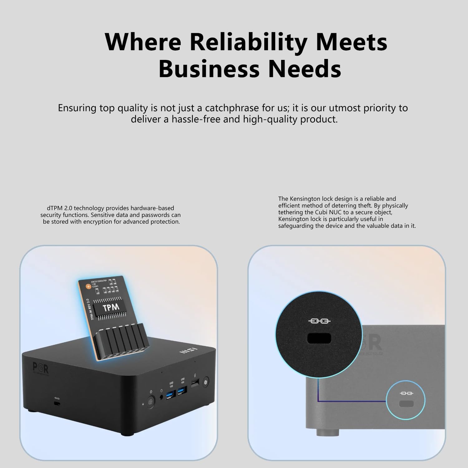 - [Maximize Space with the Versatile Cubi NUC] The Cubi NUC is perfect for spaces with limited room, featuring a 0.51-liter chassis. It can be mounted behind a monitor, on a wall, or in digital signage, freeing up desk space and creating a tidier workspace.