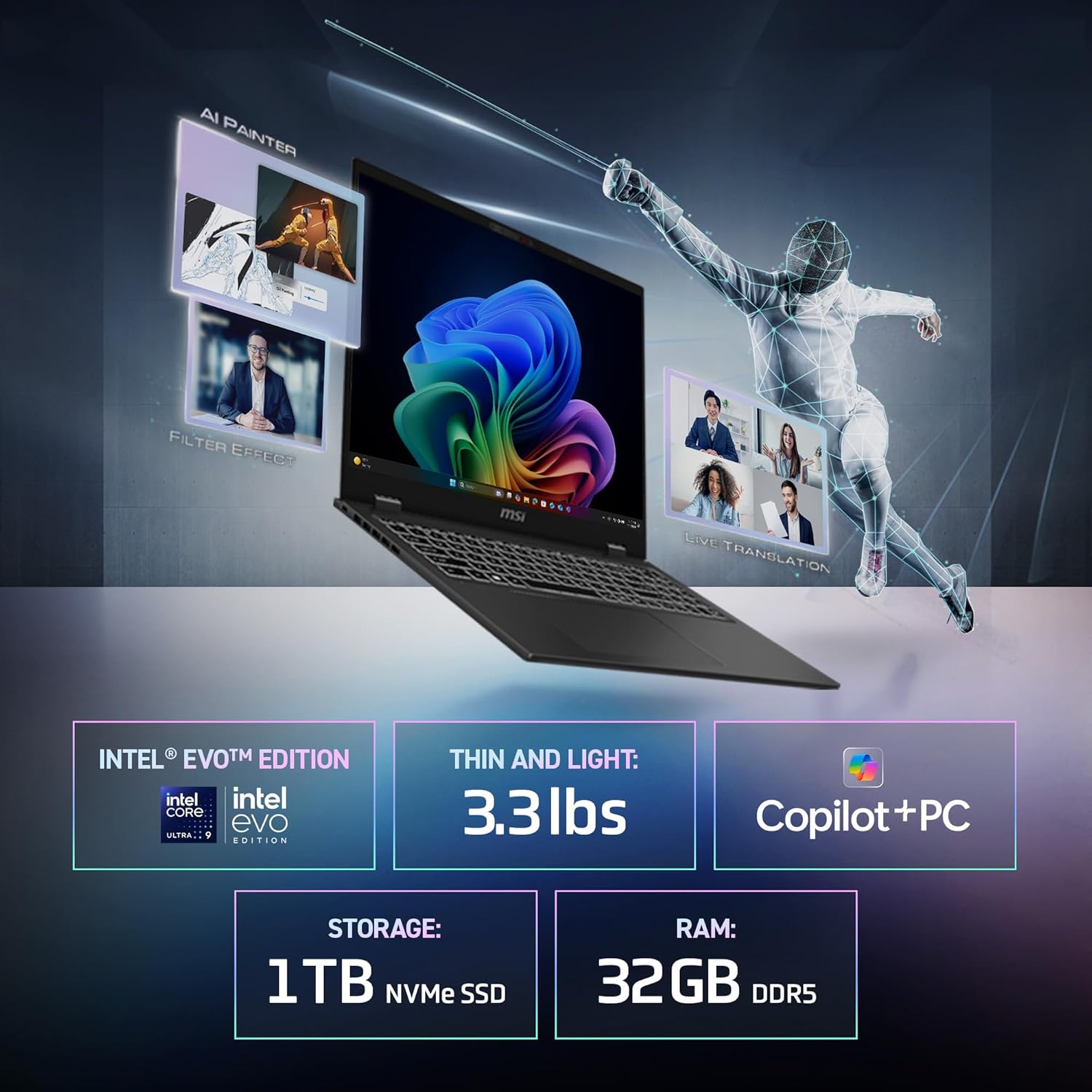 MSI Prestige 16 AI+ Evo 16″ UHD+ OLED Laptop Intel Ultra 7-256V, Intel Arc Graphics