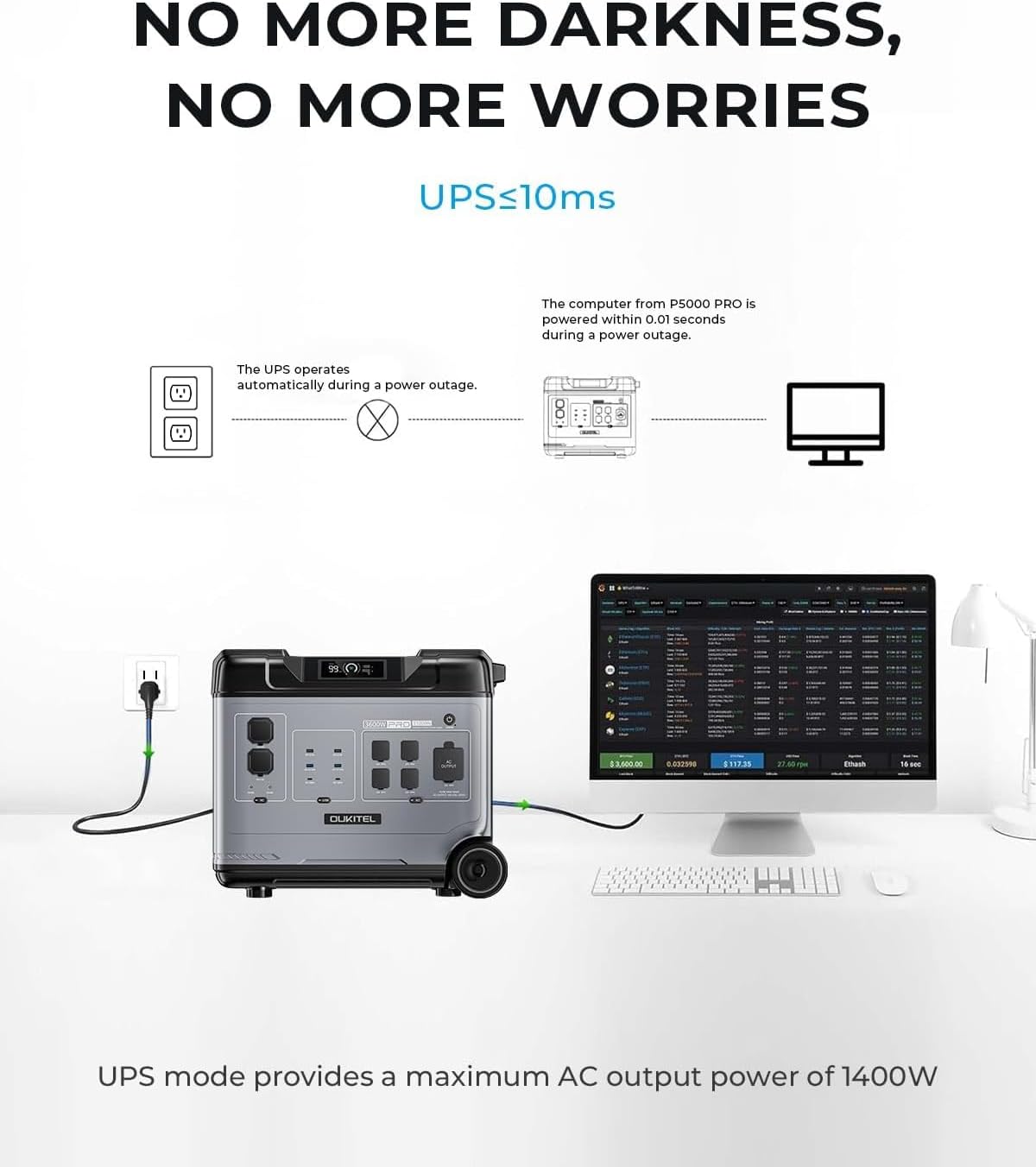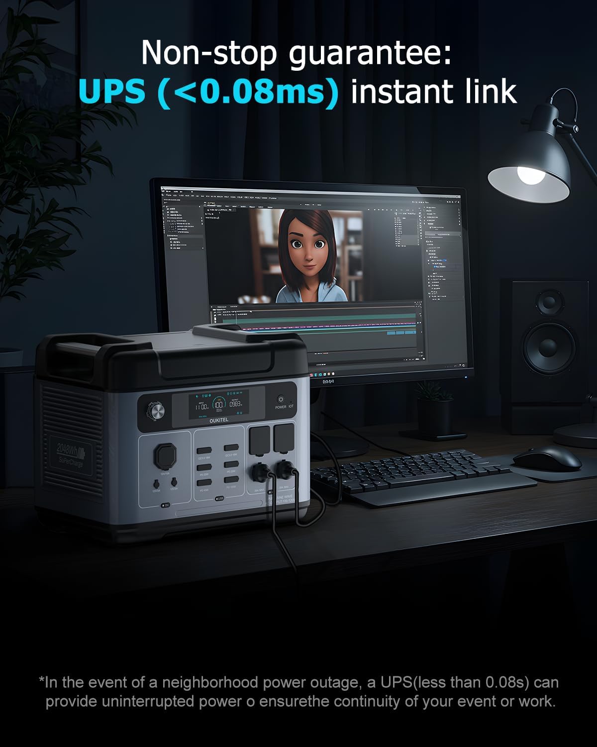OUKITEL P2001 Plus 2400W Solar Generator with 200W Solar Panel, 2048Wh Solar power station, 1800W Fast Charging